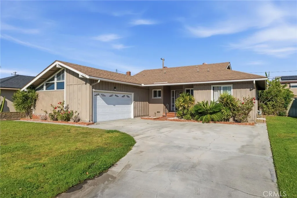Beautifully single-story home offering 3 bedrooms, 2 bathrooms, and 1,350 square feet of living space on a generous oversized 7,553 sq ft lot. This traditional home features a 2-car attached garage with roll-up automatic doors and a thoughtfully designed layout with a spacious living room. The remodeled kitchen showcases white cabinetry, charcoal quartz countertops, and stainless steel appliances, including a dishwasher, gas range, and range hood — providing the perfect space for cooking and entertaining with ample cabinet and counter space. The home features porcelain tile flooring throughout the living areas, including the living room, dining room, kitchen, hallway, and bathrooms, along with new laminate flooring in the bedrooms. Additional upgrades include dual-pane windows throughout, central A/C and heating, and an indoor washer and dryer hookup. Enjoy cozy evenings by the gas fireplace and relax in the large backyard, offering plenty of space for outdoor entertaining, gardening, or future possibilities. Conveniently located near the 91 and 5 freeways, this home offers easy access to major attractions including Disneyland, Knott’s Berry Farm, and The Source Mall. Just minutes from Dad Miller Golf Course and surrounded by a wide variety of dining and shopping options.