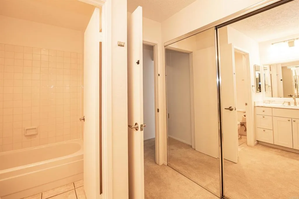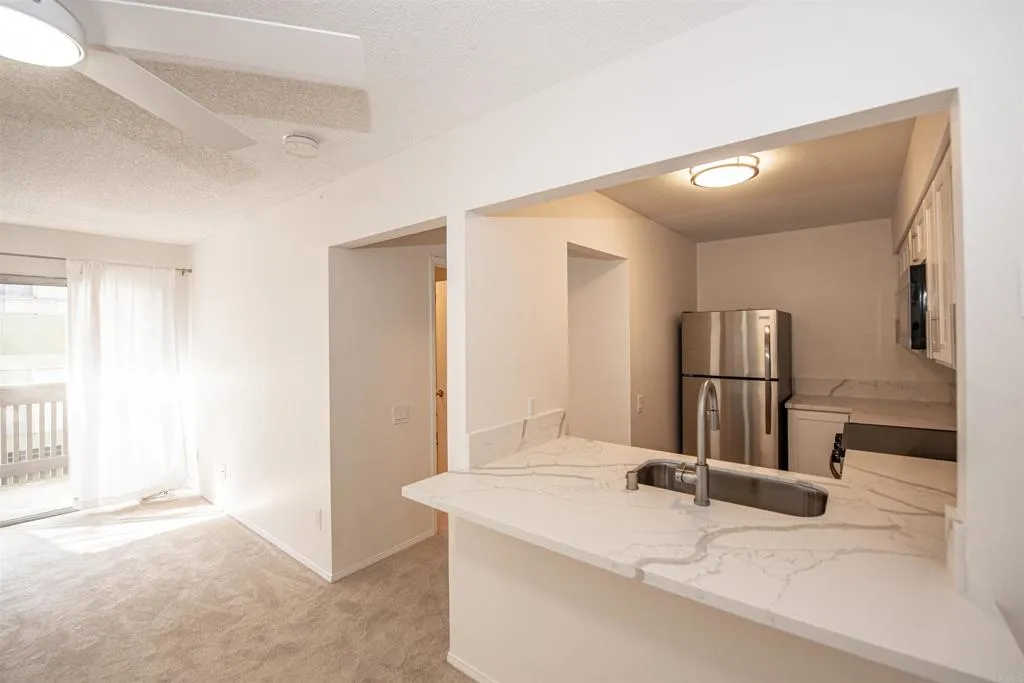Welcome to your corner charming studio retreat up in the second floor, nested in the vibrant heart of Mission Valley. Step inside and feel the spaciousness of this thoughtfully designed home, where natural light streams through a large sliding door that opens to your private balcony. New modern kitchen cabinets, new kitchen tops, new stainless steel appliances. New bathroom vanity, new toilet seat . The bathroom offers privacy with a separate toilet door! Generous size closet space. New carpet! Lounge by the sparkling pool or take a soothing dip in the spa. Fire up the community BBQ for a cookout or take advantage of the convenient on site - laundry Facilities. Your assigned parking space close to the unit means stress free arrival everyday. Mission Bay is just minuets away, promising endless coastal adventures! A must see