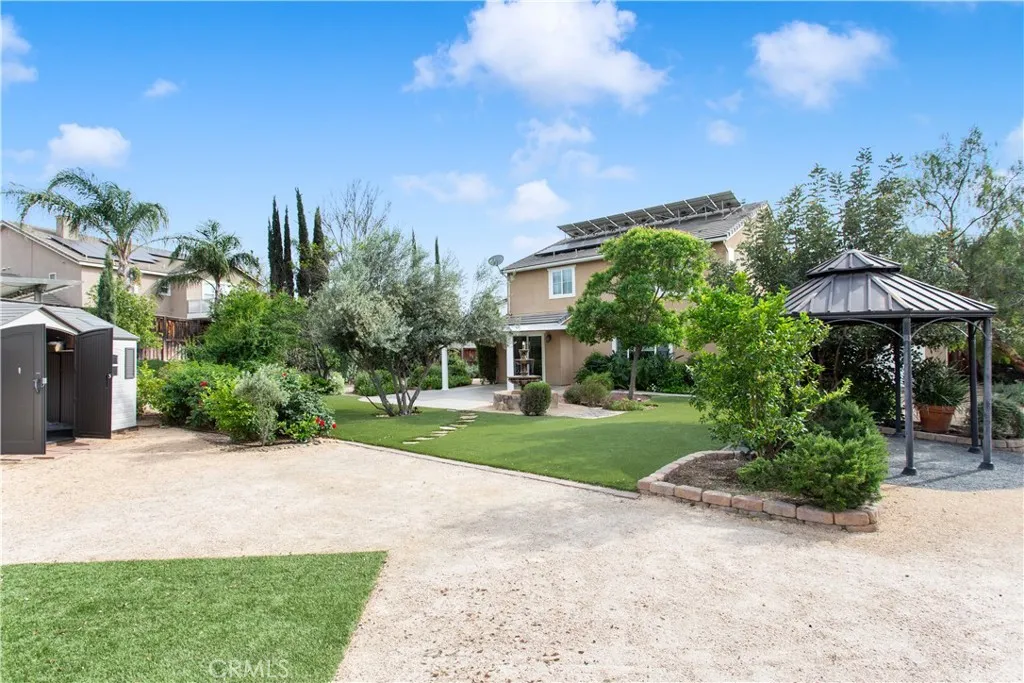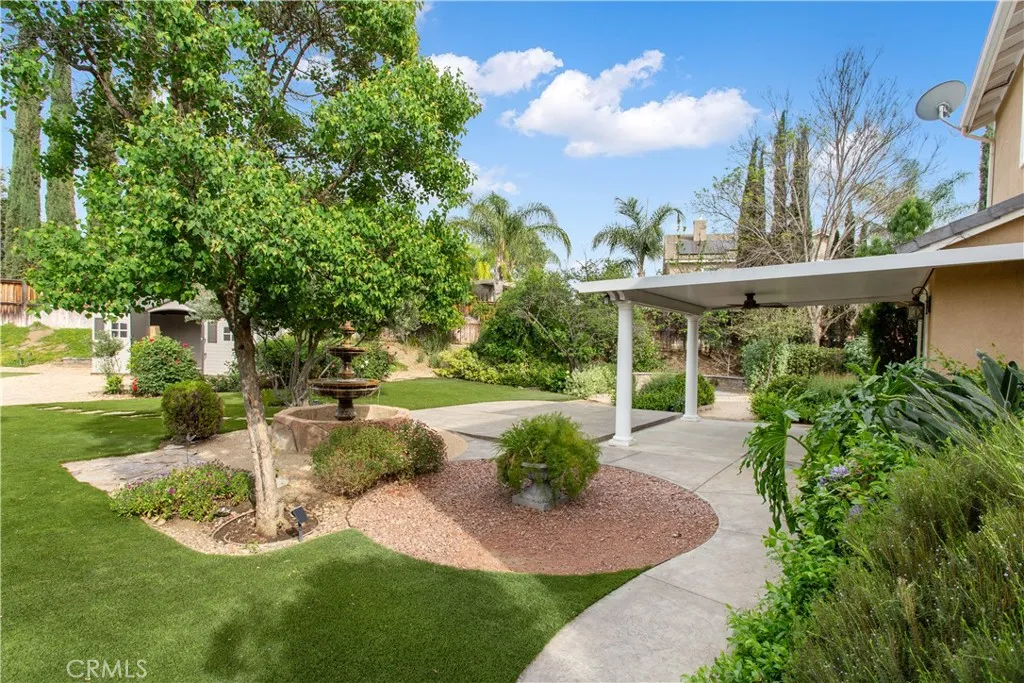 NO HOA*LOW TAXES*PAID OFF SOLAR* Adeline's Farm meets Bridgerton!! The backyard is a picturesque snapshot of a tranquil setting to enjoy afternoon tea or wine tasting & charcuterie bites with friends/family. Just under 1/3 acre tucked in a quaint corner on Watermelon Dr the yard alone speaks to you. Mature landscape with gorgeous 3-tier waterfall, covered patio, and many seating areas. Plum, apricot, tangerine, lemon, lime, olive trees and pomegranates are just a small part of the landscape. 1st time on the market! Home shows well and the right buyer will fall in love. Adeline Farms is a diverse family friendly neighborhood with walking trails, parks, and a supportive community. A wonderful place to raise a family or retire. Some Upgraded Features: 3 car+ garage with drive thru door to backyard, extra long driveway, D/S full B/b that can be used as an in-law suite, shower upgraded for easy entry, beautiful remote shades and draperies. The kitchen has wall-to-wall cabinetry with granite countertops, upgraded stove tile backsplash, cabinet hardware shipped in from Europe, upgraded exhaust fan & gas cooking range for the household chef, beautiful dining room chandelier, and newer refrigerator. A whole house water filtration R/O system, CoolFan for those summer days/nights, energy efficient HEPA Filter A/C that can be split between down/upstairs. Home prewired for alarm, cameras, J-boxes installed for electrical around house, RH wall mounted lighting in 1Br. Ohhh and I mentioned the 24 PAID OFF SOLAR PANELS! For a residential lot this big there's too many features to list, let alone the potential! There's space for an ADU, Built-In BBQ/Fireplace, Pool, or Pickleball court? Still enough room to create your own B/Y Oasis and run with your imagination! Schedule a tour if you're in search of a large property with a decent size home, not many to choose from in a NO HOA and LOW TAXES community with mature landscape.