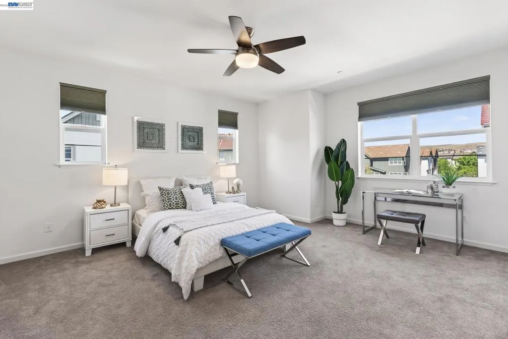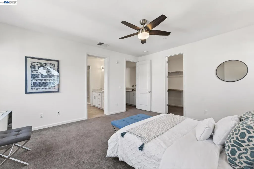 Welcome to this bright and inviting townhome-style condo offering rolling hill views and a thoughtfully designed floor plan in the highly sought-after Jordan Ranch community. This home feels like new as freshly painted interiors pair with an open living space featuring newer laminate flooring, soaring 9' ceilings, and abundant natural light. The kitchen is equipped with premium SS KitchenAid appliances. Enjoy modern comforts such as split-level heating and cooling, a Rinnai tankless water heater, Nest thermostat, Nest video doorbell, RO filter, water softener, and pre-wired high-speed Ethernet. Step outside to the brand-new Forest Park right next to the building and top-rated Cottonwood Creek K–8 school just a 5-minute walk away. Perfect for families and outdoor enjoyment. The community offers easy access to walking paths, Fallon Sports Park, BART, trails, dog parks, shopping, dining, and the San Francisco Premium Outlets.