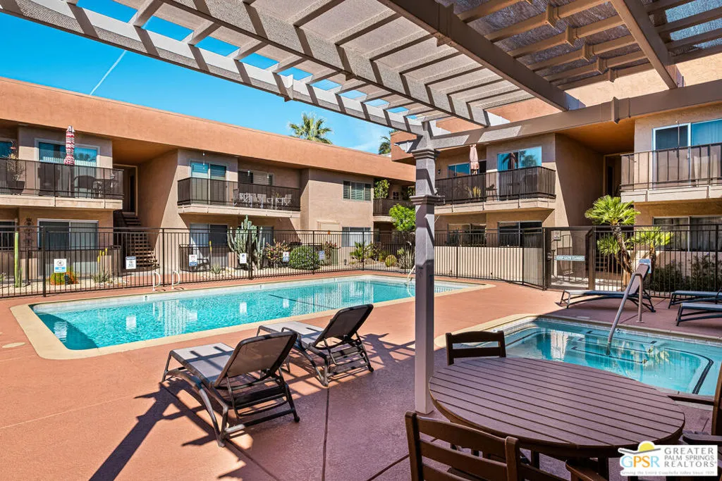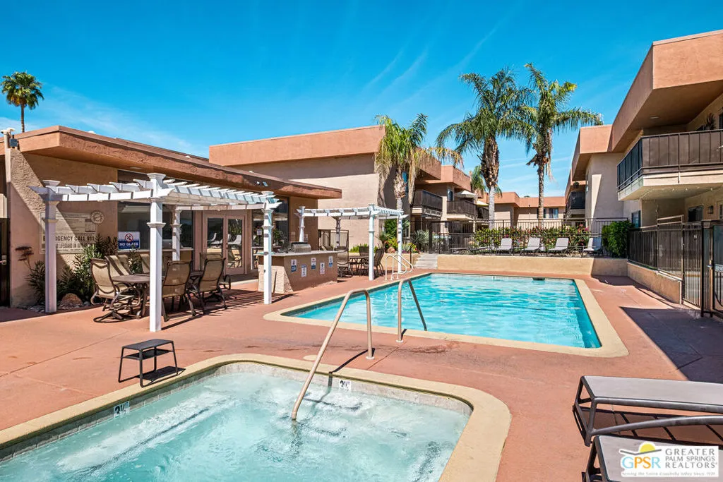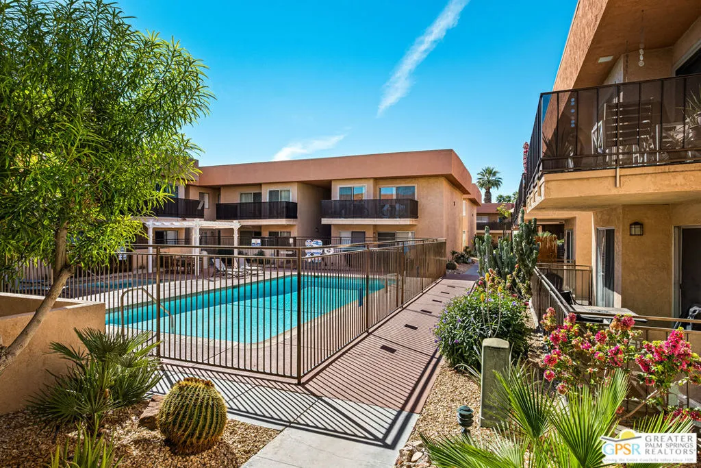 Welcome to this beautifully upgraded 1 bedroom, 1 bath Condo in the heart of Palm Springs. Featuring new flooring, a remodeled bathroom, fresh interior paint, modern light fixtures, and located on FEE Land, this home offers the perfect balance of style, comfort, and convenience. Residents enjoy resort-style amenities including three refreshing pools, a rejuvenating spa, sauna, and fitness room. Ideally located near downtown Palm Springs, this Condo offers easy access to dining, shopping, and entertainment. Whether you're seeking a full-time residence, a vacation home, or investment opportunity- this property has it all!