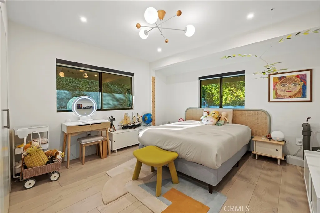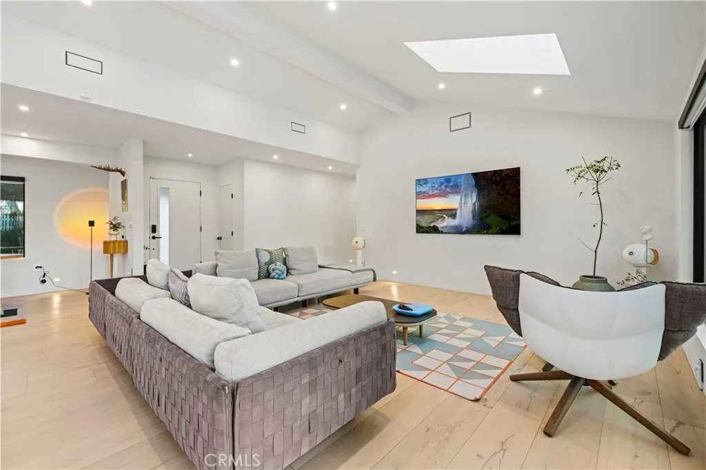 Tucked away in a desirable Studio City neighborhood, this fully updated 3 bedroom, 2.5 bathroom single story home offers a seamless blend of modern design and functional living. The open concept layout features high ceilings, wide plank flooring, and abundant natural light throughout. The main living spaces flow effortlessly into a remodeled kitchen complete with a large center island, custom cabinetry, high end appliances, and a built in wine display, ideal for both everyday living and entertaining. Expansive sliding glass doors open to a private backyard designed for indoor outdoor living, featuring a pool and spa, fire feature, multiple seating areas, views, and a covered patio for dining and gatherings. The primary suite offers direct access to the backyard along with a spacious layout and a remodeled bathroom with soaking tub, oversized shower, and modern finishes. Two additional bedrooms are well sized and versatile for family, guests, or office use. Located just moments from Ventura Boulevard, this home provides convenient access to shopping, dining, and entertainment while maintaining a private residential setting.