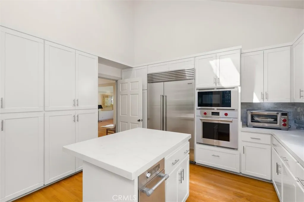This charming, spacious craftsman style home, situated in one of Pasadena's most sought after neighborhoods, was built in 1992 by a well-known local developer and real estate broker as his main residence. This high quality home includes all modern amenities. The current owner beautifully renovated the kitchen, three bathrooms, and the lower level. The inviting entry features beautiful hardwood floors, which span both levels. There is a guest bathroom off the entry. The spacious formal living room has a vaulted ceiling, a fireplace with gas starter, built-in bookcase, and recessed lighting. The formal dining room features antique stained glass windows. The renovated gourmet kitchen with skylights and vaulted ceiling includes a Sub-Zero refrigerator/freezer, Wolf convection cooktop & oven, as well as microwave, and lots of storage. The breakfast nook is conveniently located between the kitchen and the family room with a view of the lovely courtyard. The family room with built-in cabinets and bookshelves also has a vaulted ceiling and recessed lighting. The main bedroom suite with vaulted ceiling and skylight offers a ceiling fan, recessed lighting, built-in entertainment cabinet/bookcases, and walk-in closet. The main bathroom has dual sinks and an oversized steam shower. There are two additional family bedrooms with built-in storage, which are serviced by the hallway bathroom. The office/den (could be 4th bedroom) features attractive French doors that open up to a sun deck/patio. The lower level adds exceptional flexibility, with an oversized multi-purpose room perfect for a large home office, creative studio, or recreation space, complete with a dedicated file room. This level also includes a separate laundry room with secured storage and a full bathroom with jacuzzi tub. The two car garage with an automatic opener, offers plenty of cabinets and an EV charger. Other highlights of this home are the dual zone HVAC systems, solar panels, two tankless water heaters, and new desert landscaping with drip irrigation and lights. This extraordinary home offers a rare combination of quality, comfort, and modern convenience in a premier Pasadena location.