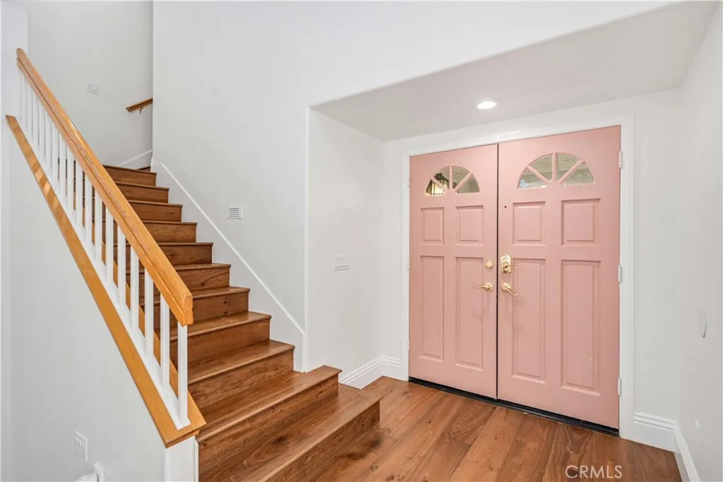 ***LIVE BEAUTIFULLY*** Welcome to an incredible opportunity to own a beautifully upgraded home in the highly desirable, gated Stratford Collection within Valencia Summit—one of the most sought-after communities in the Santa Clarita Valley! This spacious 1,850 sq ft townhome features an open and airy floorplan with soaring vaulted ceilings and an abundance of windows that fill the home with natural light. The inviting living room offers a cozy fireplace and flows seamlessly into a formal dining area with direct access to your private backyard patio—perfect for entertaining. The main level also includes a convenient half bath and an indoor laundry room. The kitchen has been thoughtfully upgraded with KitchenAid appliances, recessed lighting, and stunning hardwood flooring that now extends throughout the entire home, replacing all previous carpet. Plantation shutters, modern ceiling fans in every room, and enhanced recessed lighting throughout both levels add style and functionality. This desirable floorplan now offers 4 bedrooms, including a fully converted loft that has been transformed into an additional bedroom with two added closets. The expansive primary suite boasts high ceilings, a private balcony, and a luxurious ensuite bathroom featuring dual sinks, elegant tile flooring, and a breathtaking skylight. The secondary upstairs bathroom also includes dual sinks and upgraded finishes, while the downstairs bathroom has been updated with a new vanity. Additional upgrades include added shelving in the garage and pantry, a custom-built storage room underneath the stairs, Toto toilets with bidets in all bathrooms, and a recently upgraded A/C unit for enhanced comfort. Step outside to your own private oasis—a generously sized backyard with a soothing above-ground spa, patio space for grilling, and room to relax or entertain. Parking is a breeze with a 2-car attached garage, driveway space, and ample guest parking nearby. Residents of Stratford Collection enjoy resort-style amenities including multiple pools and spas, BBQ areas, a recreation room, basketball and tennis courts, and access to scenic biking, hiking, and walking trails. Conveniently located near shopping, dining, top-rated schools, and with easy freeway access, this home truly has it all. Don’t miss this exceptional opportunity—this one won’t last!