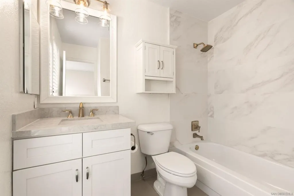 Welcome to this beautifully upgraded townhome on a quiet street within the highly valued La Jolla School District, walking distance to Bird Rock, PB, beaches, shopping, dining, and everyday essentials. This move-in ready home features a fully renovated, modern coastal interior with a quartz countertop kitchen, Whirlpool appliances, main-floor powder room, and in-unit washer and dryer. The open-concept layout flows seamlessly to a private 180 sq ft patio, perfect for indoor-outdoor living and entertaining. Upstairs, the primary suite offers vaulted ceilings, a walk-in closet, and a spacious en-suite bathroom. The second bedroom includes its own en-suite bath, ideal for guests, roommates, or a home office. Additional features include a private 1.5-car garage with extra storage and a dedicated parking space directly in front. Rare opportunity to own a turnkey gem in one of San Diego’s most desirable coastal communities.