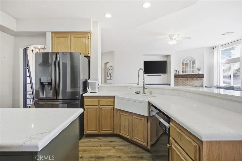 Beautifully maintained 4 bedroom, 2 bathroom home in the desirable Spring Meadow neighborhood near Liberty High School, one of Bakersfield’s highly rated schools. Situated on a spacious corner lot, this home offers strong curb appeal, vaulted ceilings, abundant natural light, and an open layout connecting the living, dining, and kitchen areas. The kitchen features updated countertops, stainless appliances, and bar seating ideal for everyday living and entertaining. The living room fireplace creates a warm focal point, while the primary suite offers a spacious and comfortable retreat. Step outside to a covered patio and backyard designed for entertaining, with room for RV parking or future customization. Move-in ready in an established neighborhood.