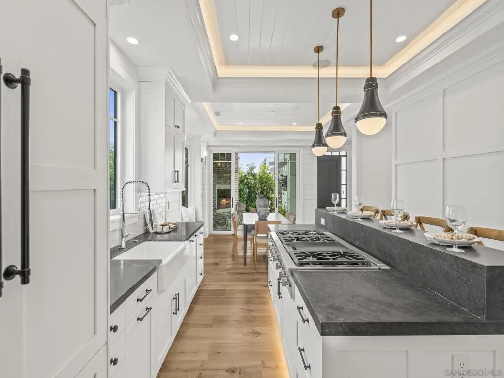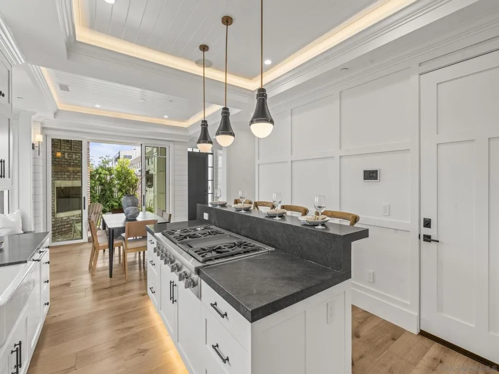 Only one 5BR New Construction Home Left of the 4 built! Experience the pinnacle of coastal luxury in this brand-new 5BR, 3,473 sq ft detached 'Lock-n-Go' Beach House perfectly positioned in La Jolla’s coveted Beach Barber Tract—just moments from Windansea Beach, Little Point and the Village. Bathed in natural southern light, this architectural standout showcases refined craftsmanship and thoughtful design, featuring a striking tambour wood cupola primary bath ceiling detail, chef’s Thermador appointed kitchen with tucked away walk-in catering pantry, and a unique entertainer’s Media Room Lounge complete with designer wet bar, Control 4 Home Automation/AV System, 50+ bottle wine column fridge and elevator access to all levels. The panoramic rooftop deck captures sweeping coastal vistas of the La Jolla, Blacks & entire San Diego coastline to the north. Every detail reflects custom luxury & maximized use of space—from bespoke wood millwork and tongue-and-groove ceilings to modern Lutron lighting, Solar, Tesla Battery & Control 4 Home system. Perfect as a multigenerational 2nd Home, lock-and-leave coastal escape, or premier luxury rental potential, 466 Westbourne defines modern La Jolla living just steps from year round surf, sand, sunsets! BUILDER: Attention to detail & pride of ownership define this rare La Jolla new construction offering, blending modern luxury with timeless design. Timeless black-and-white lines, copper downspouts, and custom washed brick frame a bright, sun-soaked entry patio, outdoor fireplace & yard adorned with lush hedges. KITCHEN / LIVING: The main level welcomes you with vaulted alder beam ceilings, gas fireplace, and light beachy wide-plank oak floors. The entertainer’s kitchen features a walk-in working pantry with 2nd sink, 2nd dishwasher, and microwave, plus a full Thermador appliance suite—36” paneled fridge, 48” range top with griddle, 30” double ovens, Kohler farmhouse sink, and natural slab center island with bar stool seating. LOWER LEVEL: All floors Accessible by elevator, the expandable lower-level Media/Game Room offers a custom wet bar, sink, Thermador 50+ bottle wine column, beverage fridge, floating shelves, AV system, and crown molding LED lighting. This level boasts a private guest room with en-suite bath, the 5th Room for your needs, owner storage room, and a spacious walk-in laundry room. TOP FLOOR: The impressive Primary Suite captures sunset views and flows into a spa-inspired bathroom featuring a freestanding Kohler soaking tub under a tambour wood cupola ceiling, herringbone inlay tile, dual vanities with LED mirrors, makeup counter, and rainfall shower with multi-function fixtures. A must after a day in the sun! OTHER: 1) Laundry room with front-load washer/dryer, quartz counters, and farm sink. 2) Solar Panels Installed with Tesla Powerwall Battery. 3) Two-car garage with EV Outlet. 4) Exterior beach surf shower. 5) Control 4 Smart Home AV System with built-in speakers, Lutron lighting, mult cameras installed & expandability.