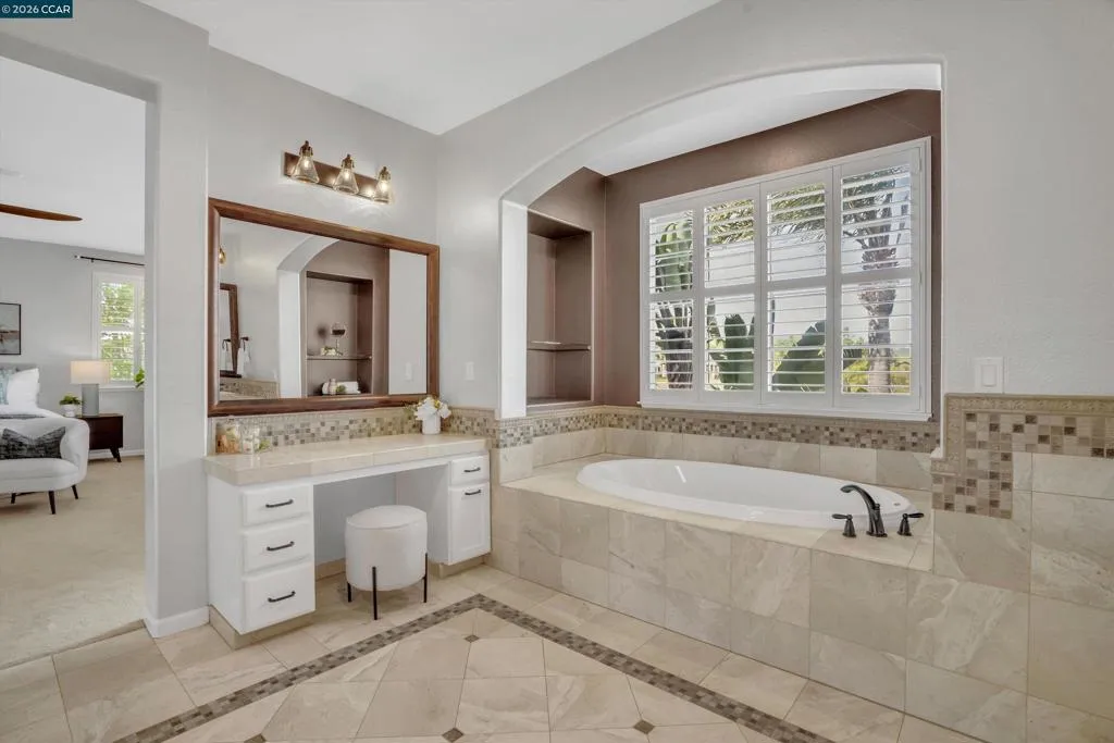 Welcome to this stunning 5-bedroom, 3-bath home with expansive owned solar, backing to a scenic golf course with breathtaking views of Mount Diablo. This exceptional property features a gorgeous pool and spa, perfect for relaxing or entertaining. Inside, enjoy a convenient downstairs bedroom and full bath, ideal for guests or multi-generational living. The updated kitchen shines with quartz countertops, a large pantry, newer backsplash, and modern lighting as well as reverse osmosis. Throughout the home, you’ll find updated bathrooms, a spacious layout, and a versatile, expansive bonus room perfect for a media room, game room, or gym. A two-car tandem garage provides ample parking and storage. This is luxury living at its finest!
