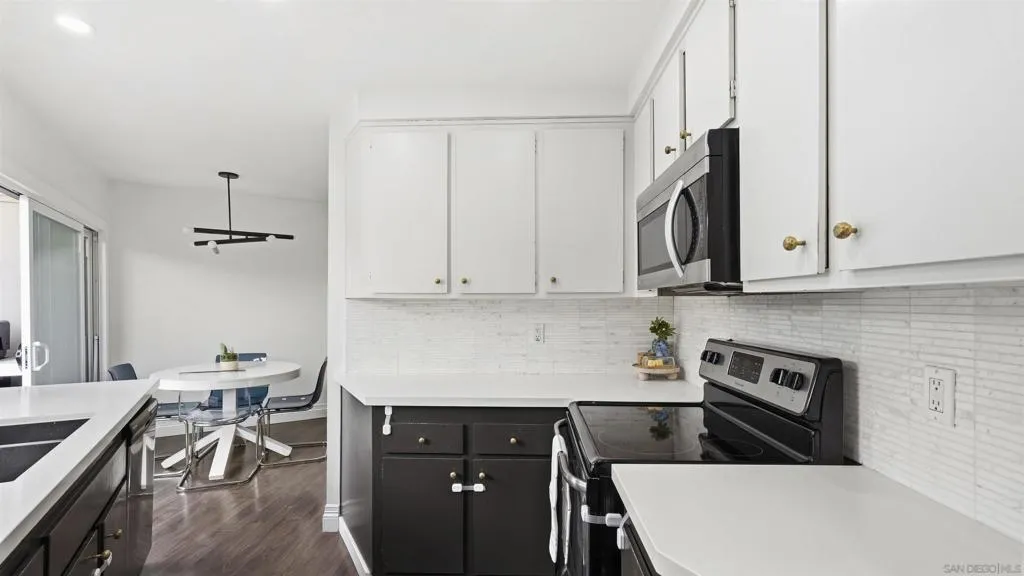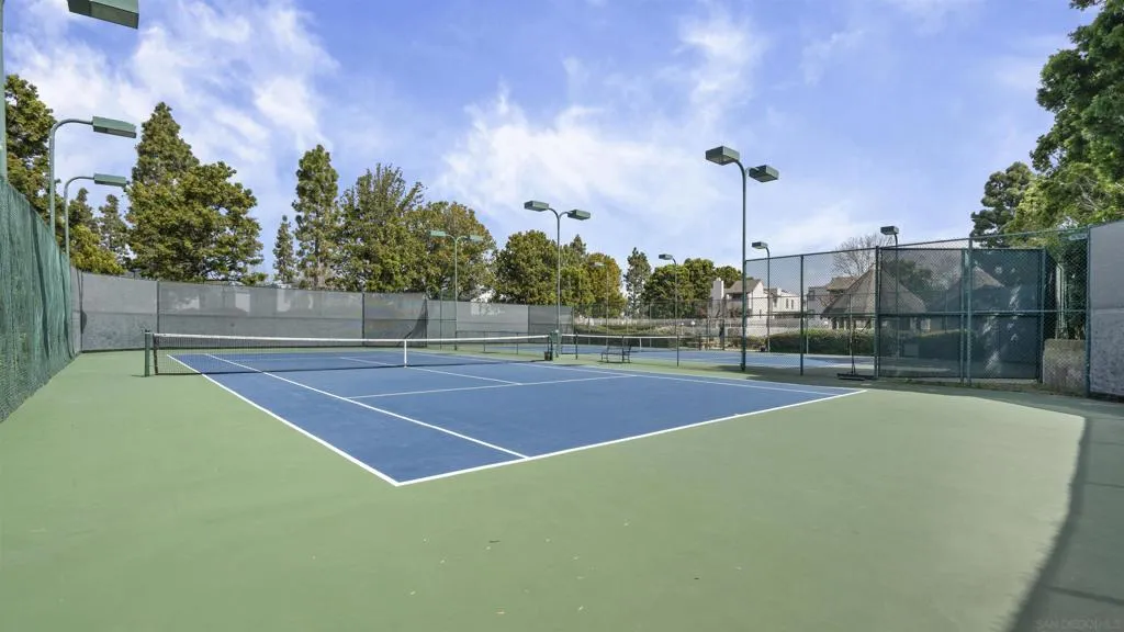 Welcome to 8490 Via Sonoma, Unit 10—an exquisite townhome that redefines modern living in the coveted enclave of La Jolla. This elegant 2-bedroom, 2.5-bathroom residence spans 1,074 square feet of thoughtfully curated luxury, blending contemporary design with everyday comfort. Step into an inviting interior where sleek hardwood laminate floors set the tone for sophistication. The chef-inspired kitchen dazzles with white quartz countertops, carrara marble tile backsplash and premium appliances, ready to bring your culinary visions to life. The open-concept layout seamlessly connects the kitchen to the living area and private outdoor deck, creating an ideal flow for both intimate evenings and lively gatherings. Ascending to the second floor, you’ll find two serene bedrooms, including a capacious primary suite featuring a private deck for relaxation and adorned with an ensuite bathroom featuring a double vanity with white quartz, plus walk-in shower. A great sized second bedroom, plus upgraded 2nd bathroom boasting a shower over the bath. The convenience of an attached 2 car garage offers both secure parking and ample storage, along with a conveniently situated in-unit washer and dryer. Beyond the walls, step into a world of leisure with access to meticulously maintained community amenities. Unwind by the sparkling pool, challenge friends on the tennis court, or enjoy quiet moments under the private cabana. Nestled in a tranquil, highly sought-after neighborhood of Woodlands West 2, this home provides the perfect balance of sophistication and low-maintenance living. Moments from La Jolla’s world-class dining, shopping, and coastline, this property offers a lifestyle as exceptional as its address.