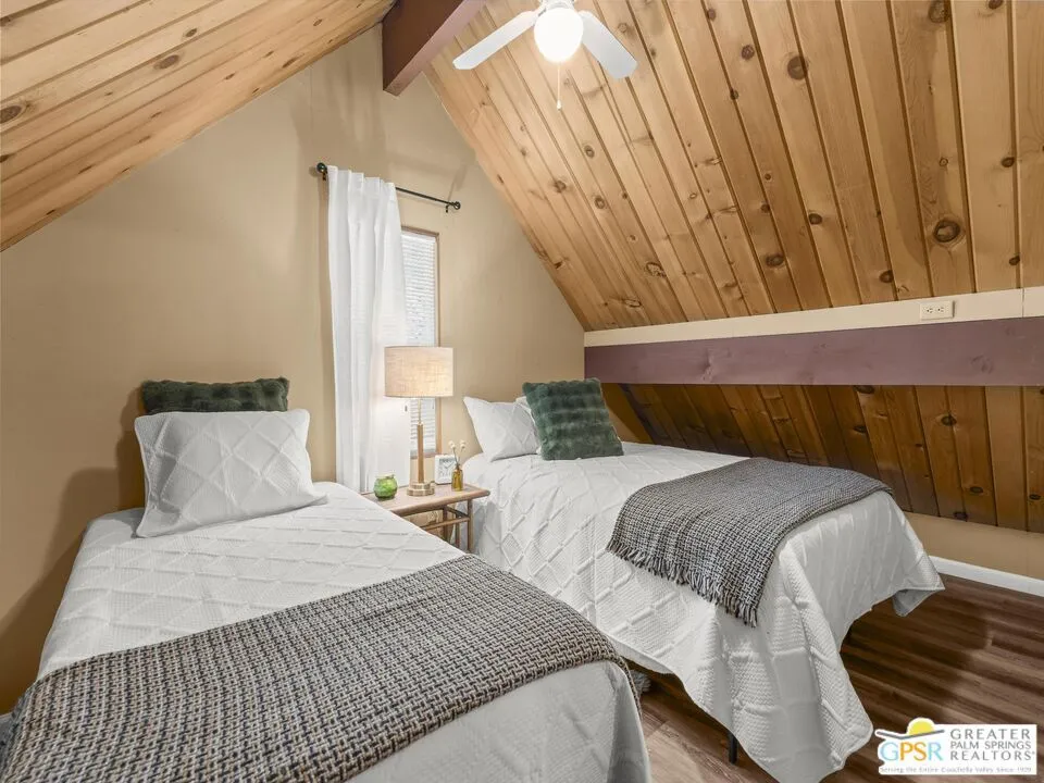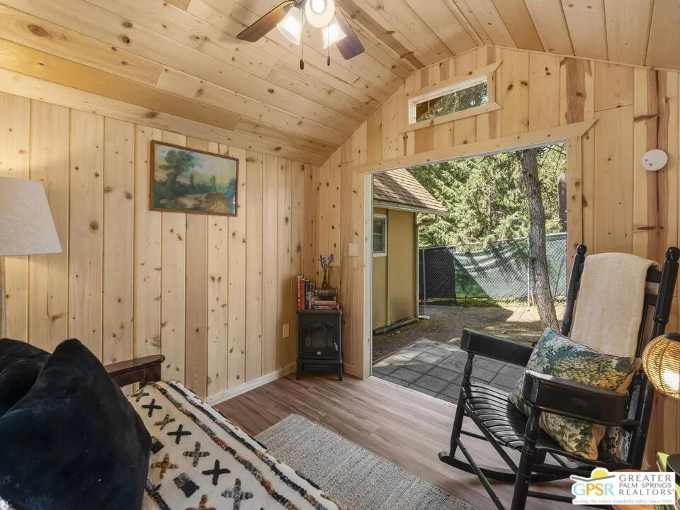 Idyllwild mountain cabin with loft & fireplace. Lofted mountain cabin with a cozy fireplace, main level bedroom, & low-maintenance fenced yard, just minutes from town. This charming cabin strikes a balance between peaceful surroundings & convenient access to local shops, galleries, dining, entertainment & outdoor activities. Imagine unwinding by the fireplace after a day exploring nearby trails or enjoying a quiet morning taking in the crisp mountain air. Rustic character pairs with thoughtful modern touches & vintage accents to create a warm & inviting atmosphere. The layout includes a main-level bedroom, loft bedroom & two bathrooms, offering flexibility for weekend getaways or full-time living. Also included is a 10' x 10' insulated shed with electricity, a window, luxury vinyl flooring, & tongue-and-groove interior finishes. Nearby trails & outdoor recreation make it easy to experience the area's natural beauty all seasons. From peaceful evenings by the fire to sun-drenched days outdoors, this cabin evokes the Idyllwild lifestyle. Whether you're seeking a quick escape to relax & recharge or a full-time residence, this cabin embodies the spirit of simple mountain living.