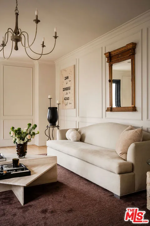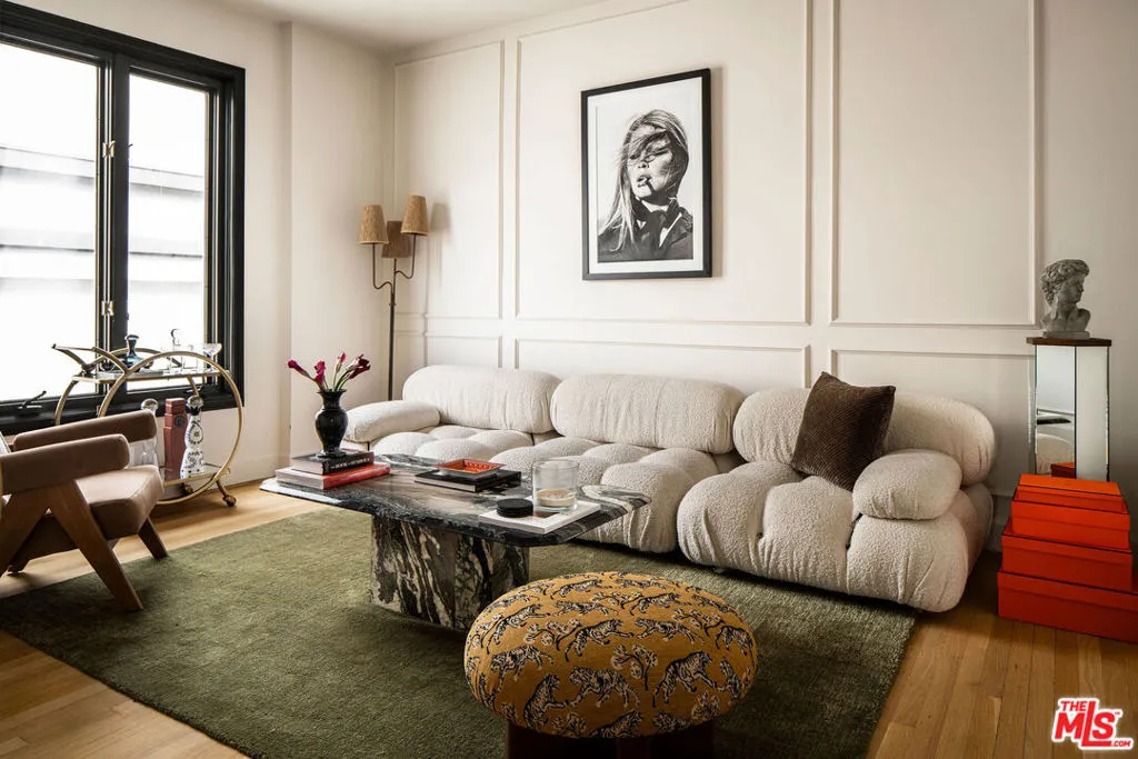 Located within one of Los Angeles's most storied and architecturally significant buildings, The Granville Towers this very residence once home to legendary artist David Bowie is an updated 2-bedroom, 2-bath condo that offers a seamless blend of timeless character and modern sophistication. A gracious foyer welcomes you into an expansive formal living room, perfectly suited for both grand entertaining and intimate gatherings. Sunlight pours into the public spaces, highlighting sweeping city and hillside vistas. The chef's kitchen is thoughtfully designed with a generous center island and flows effortlessly into a light-filled dining area, complete with a built-in bar and ample storage. The oversized primary suite is a serene retreat, capturing iconic views that include the famed Chateau Marmont. It features custom-built closets and a luxurious bath appointed with a soaking tub wrapped in Carrera marble. A separate guest suite offers exceptional privacy, complete with a walk-in closet, while maintaining the home's historic charm and versatility. Residents enjoy controlled access, security, central HVAC, and in-unit laundry, all within a prime West Hollywood location just moments from the city's finest dining, shopping, and cultural destinations. A rare opportunity to own a true pied-a-terre landmark setting steeped in cultural history. Furnished option available upon request.