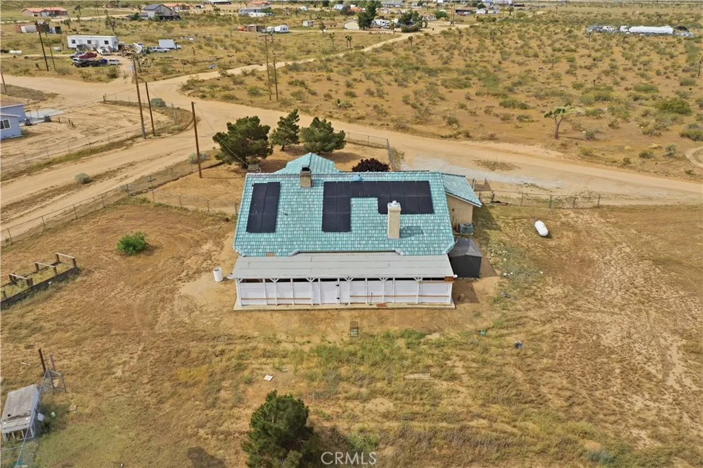 Wonderful family home set on over 2 acres of fully fenced horse property on a desirable corner lot. This custom-built residence offers 4 spacious bedrooms and 2 full baths, featuring soaring vaulted ceilings, pot shelves throughout, and abundant natural light. The spacious kitchen is filled with sunshine and opens to inviting living areas with two fireplaces, perfect for cozy gatherings. Every room features high ceilings and ceiling fans for year-round comfort, complemented by central heating and air plus a swamp cooler. The generous primary suite includes a spa-like bath with a jetted tub framed by a view window and a large, separate stall shower. Energy-efficient living with PAID-OFF SOLAR, consisting of 32 panels with a system cost of $41,357 and an estimated rate of $0.108 per kWh, offering long-term savings and value. Outside, enjoy a covered patio, expansive grounds, a Connex container, large storage shed, and plenty of space for animals, toys, or future projects.