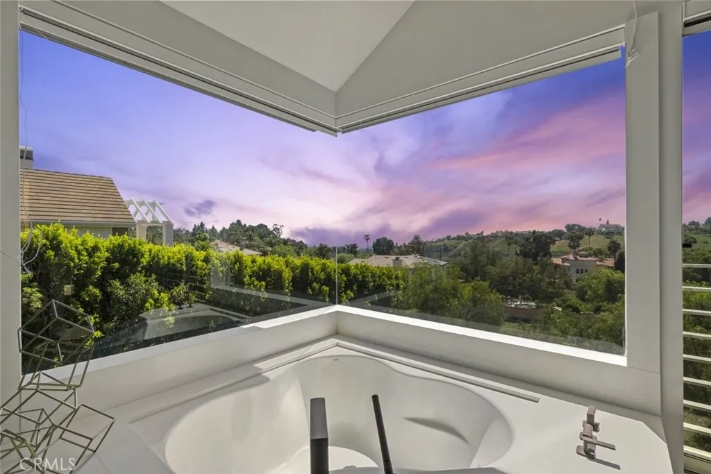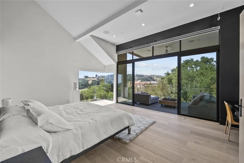 VIEW VIEW VIEW. NEWER HOME BUILT IN 2018 - WINNER OF THE 2019 Design Excellence Award with the AIA SFV -American Institute of Architects. Enjoy sweeping panoramic views from the primary suite, living room, and kitchen, with scenery extending from the surrounding mountains to the San Fernando Valley. Thoughtfully planned out layout and unique features are breathtaking and one of a kind. This architecturally distinctive home showcases and refines modern design with soaring ceilings, expansive windows that fill the home with natural light and numerous skylights. The open concept floor plan is designed for both everyday living and entertaining, highlighted by an oversized living and dining area with a dramatic dual fireplace. The kitchen features high end appliances, sleek cabinetry, and generous workspace, seamlessly connecting to multiple covered patios and balconies that create an indoor outdoor living experience. YOU'LL FEEL LIKE YOU'RE ON VACATION WITH ALL THE DIFFERENT UNIQUE OUTDOOR SPACES. Primary suite offers a walk in closet and a spa style bathroom, while all additional bedrooms include its own private bathroom, providing comfort and privacy. One bedroom has a bonus LOFT to enjoy as extra living space, office, play area- the possibilities are endless. Custom modern estate located within a quiet gated enclave offering privacy, panoramic views, and nearby equestrian trails. Additional highlights include vaulted ceilings, ample size windows, and a large oversized backyard with plenty of potential. MAKE IT YOUR OWN. BRING YOUR IMAGINATION TO LIFE! Conveniently located near the Porter Ranch shopping center, Sierra Canyon School, and with access to the 118, 405, and 5 freeways. This unique property combines modern architecture, privacy, and scenic views in a desirable gated community. Your own private oasis to call home!