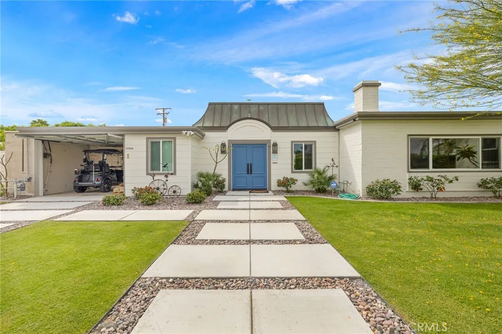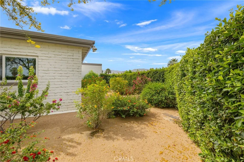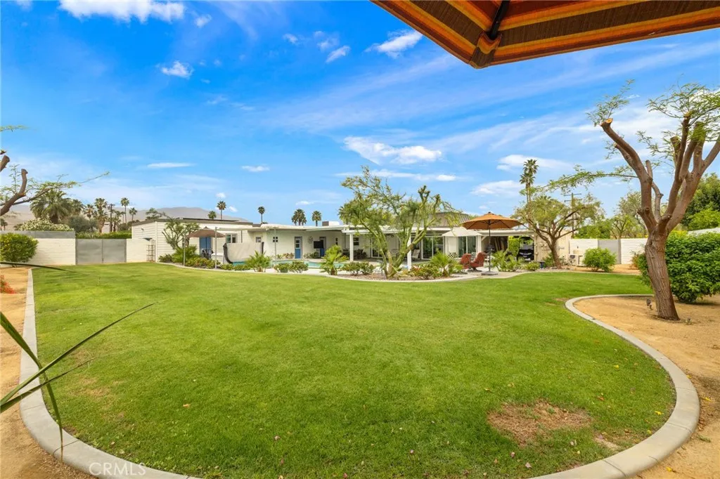 A rare mid-century estate, formerly the residence of Donald P. Kennedy, renowned philanthropist and influential proprietor of First American Title Company. This stunning four-bedroom, 3-bathroom estate is beautifully situated on nearly half an acre of meticulously manicured grounds, featuring a sparkling pool, expansive yard, a newer four-car garage perfect for a car enthusiast, and a separate golf cart garage with its own private double-gated entrance. Panoramic, snow-capped views of the San Jacinto Mountains, including San Gorgonio, the Santa Rosa Mountains and the Little San Bernardino range, create a breathtaking backdrop. Ideally located within walking distance - or a short golf cart ride- to the Shops at El Paseo, often haled as the 'Rodeo Drive of the Desert,' this estate offers the perfect blend of historic significance, luxury, and quintessential Palm Desert lifestyle. This property was meticulously renovated in 2021 including: Interior - all new windows, window coverings, glass sliding doors, laminate flooring, new complete kitchen and three bathrooms, interior paint throughout, LED lighting, switches and receptacles. Exterior - overhead electrical was placed underground electrical, solar panel fully paid, exterior block walls and locking gates, newly built four car garage, RV storage yard, new awnings in backyard patio for shade, full landscaping with expansive grass, mature trees and flowering plants, pool coping, jacuzzi and foam roof.