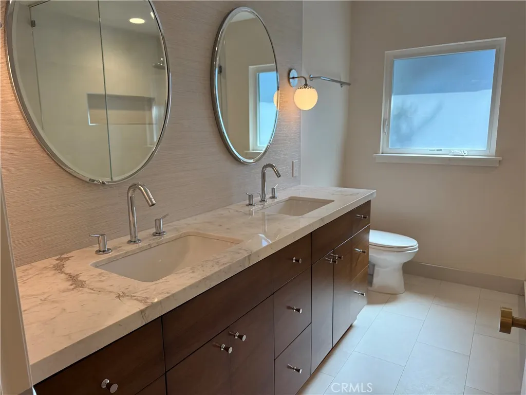 Experience elevated living in this beautifully re-imagined single-story mid-century modern 3-bedroom, 3.5-bathroom residence, where timeless architectural style meets contemporary sophistication in highly desirable Upper Hastings Ranch. Rich hardwood floors flow seamlessly across the open-concept living spaces, complemented by vaulted ceilings throughout, recessed lighting, custom cabinetry, and statement mid-century modern chandeliers that add warmth and architectural character. The living room is highlighted by large windows that flood the space with natural light, creating a bright and welcoming atmosphere. An expansive dining area and inviting den provide versatile spaces for both everyday comfort and entertaining, while integrated Sonos surround sound enhances the ambiance throughout the home. The gourmet cook’s kitchen is a true showpiece, featuring high-end Miele appliances, including a sleek flush-mounted dishwasher. A striking quartzite island anchors the space, perfect for gathering, while a spacious walk-in pantry provides exceptional storage. A designer powder room wrapped in Missoni wallpaper and a secondary bathroom with LED vanity mirrors add bold, modern statements for guests and family alike. The luxurious master suite features a large walk-in closet with a marble countertop island, creating a boutique-style dressing experience. The backyard features Trex decking, ideal for entertaining or relaxing in style. Additional highlights include motorized Hunter Douglas blinds, a Nest wireless thermostat, dual-sided fireplace, and ample garage storage. This exceptional single-story mid-century modern home combines vaulted ceilings, timeless style, elevated finishes, smart-home technology, and outdoor luxury — a rare rental opportunity in sought-after Upper Hastings Ranch.