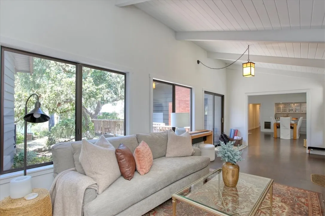 SINGLE LEVEL living on a third of an acre (14,124 SF). The original home is a ranch style house with two bedrooms and two bathrooms, the living room, dining area and kitchen, plus a two car garage. The current owners have completely remodeled the house, and while doing so, they added a permitted third bedroom and an additional three-quarter bath downstairs. The kitchen is gorgeous, the bathrooms are the same! Granite countertops in the kitchen and bathrooms. The kitchen boasts stainless steel appliances, while all three bathrooms have heated floors! And trust me, you didn’t know how much you like heated bathroom floors until you have heated floors in your bathroom! The open floor plan lends nicely to entertaining family and friends and the beautiful wood-burning fireplace adds a nice touch! The newly added downstairs space is accessible from both inside and outside. The large back deck overlooks the large parcel, then out to the Pacific Ocean. On your way to the oversized two car garage (with tons of storage) is a second seating area that could also be used as an office with an ocean view! The large backyard also includes a very private hot tub.