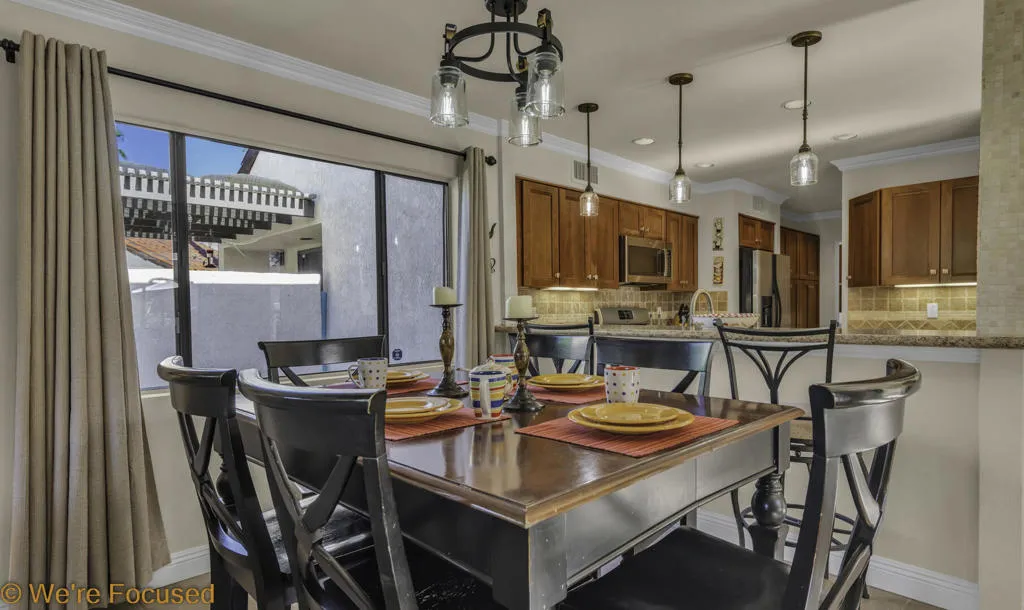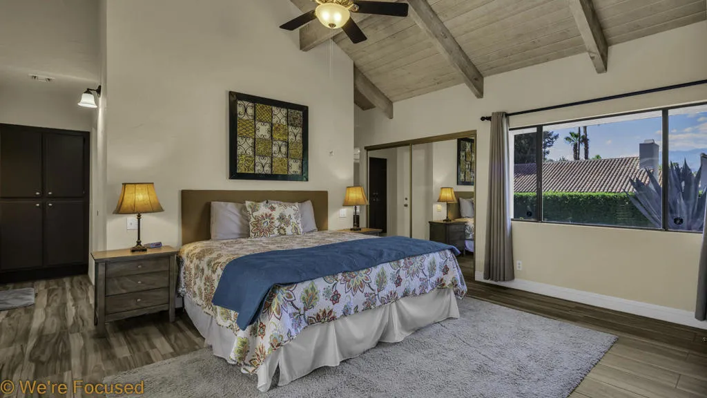 This Southwest-facing, turnkey furnished desert retreat showcases sweeping views of the lush open spaces at Mission Hills Country Club and offers the perfect blend of comfort, style, and resort living.The highly desirable Courtside floor plan features 2 bedrooms and 2 baths, thoughtfully furnished and beautifully decorated throughout. The spacious Great Room is warm and inviting with a dramatic vaulted wood-beamed ceiling, cozy fireplace, and wet bar ideal for relaxing evenings or entertaining guests. Ceramic tile flooring flows seamlessly throughout the home.The updated open kitchen is both stylish and functional, appointed with granite countertops, stainless steel appliances, and abundant cabinetry for storage. A separate utility room conveniently houses the washer and dryer. The primary suite is a private retreat featuring vaulted ceilings and sliding glass doors that open to the serene front courtyard. The en-suite bath includes dual vanities, a tub and a separate shower. The guest bedroom, located in its own private wing, offers an en-suite bath and courtyard access providing comfort and privacy for visitors.Step outside to enjoy true indoor-outdoor desert living. The spacious rear patio is perfect for entertaining or unwinding while taking in tranquil pool and mountain views. The private frontcourtyard offers a peaceful setting for morning coffee or evening relaxation.With a Social Membership you can enjoy Tennis Courts, Fitness Center, Pickleball Courts and Croquet Lawns. Conveniently located and easy access to the Palm Springs Airport, Eisenhower Medical Center, Agua Caliente Casino, Palm Springs Airport, the shops at El Paseo, as well as fine dining. Enjoy desert living at its finest! Mission Hills also is the home of 3 championship golf courses..