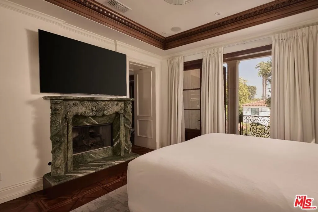 Impressive contemporary mediterranean estate in the coveted Beverly Hills Flats. Built in 2013, this newer construction home is offered fully furnished and features integrated smart home technology throughout. Grand in scale, the interiors showcase soaring ceilings, a sculptural spiral staircase, and curated lighting and security systems. The residence boasts 6 bedrooms and 10 bathrooms, with each bedroom offering an en-suite bath, walk-in closet, and patio access.The kitchen features an oversized marble island and equipped with top-tier appliances, suited for both daily living and entertaining. The primary suite offers a spacious, private retreat with dual bathrooms, including a Jacuzzi, two walk-in closets, and a sitting area overlooking the grounds.Additional features include a private elevator, gated driveway, and a 10-car subterranean garage. The outdoor setting is tailored for entertaining, with a full outdoor kitchen, gazebo, hot tub, waterfall feature, two fire pits and manicured landscaping. A refined offering in one of Beverly Hills' most sought-after neighborhoods. Available for 06/01 move-in.