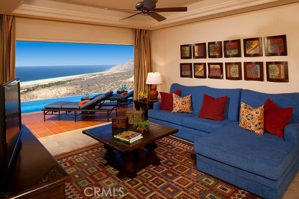 Pueblo Bonito luxury villas combine space and comfort with upscale living. Each villa features three spacious bedrooms with private bathrooms, a dining area, a living room with a fireplace, a fully equipped kitchen, a TV room, a guest half bath, and a laundry room. Bedrooms include walk-in closets, pillow-top mattresses, and Egyptian cotton linens, while bathrooms offer dual vanities and jetted tubs. Villas accommodate up to eight adults, plus two additional guests with a sofa bed. Non-smoking.
