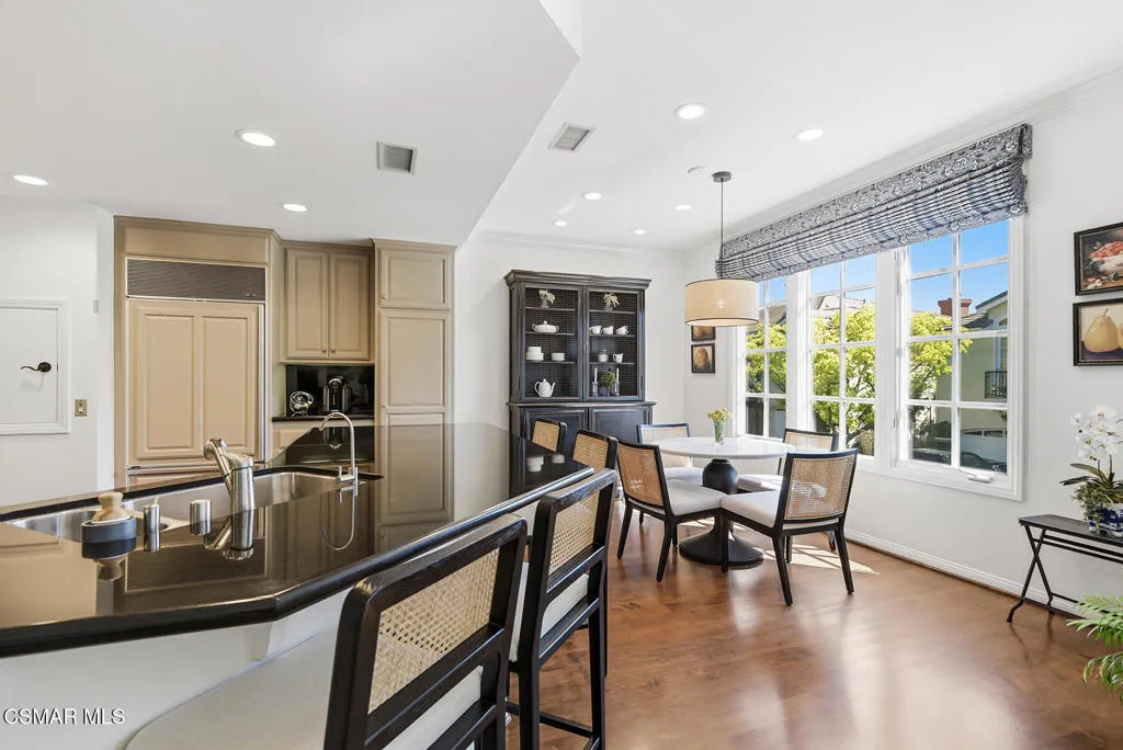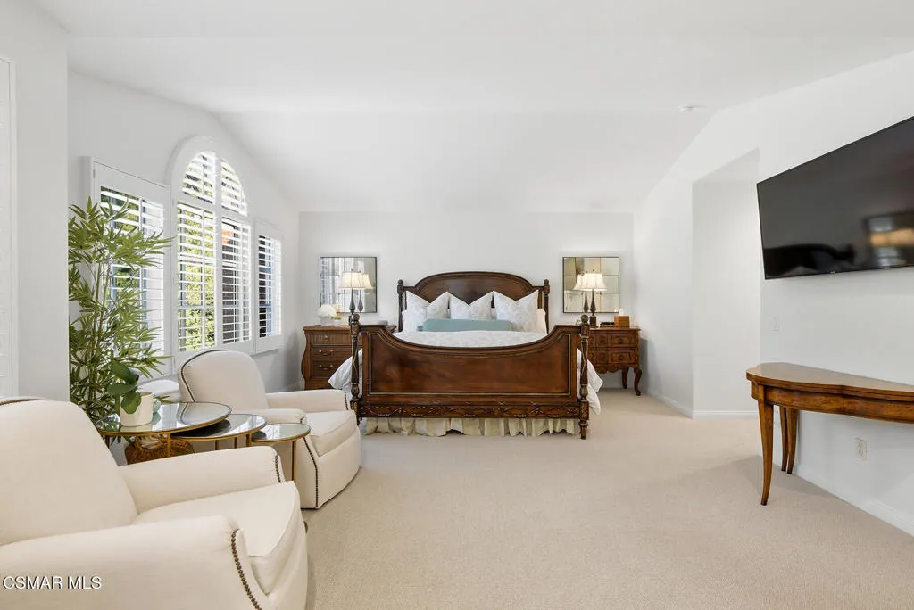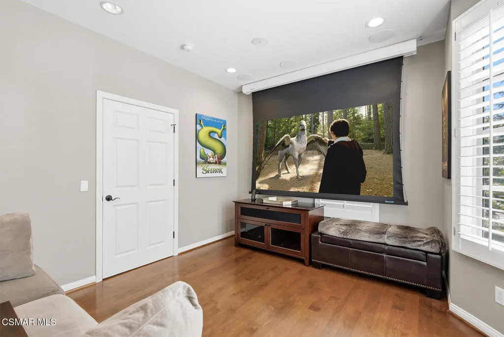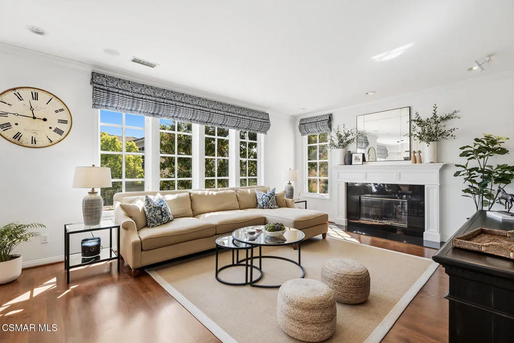Experience the best of Sherwood living in this ideally situated end-unit townhome, set within one of Southern California's most prestigious gated communities. Spanning approximately 3,500 square feet, this light-filled residence offers 3 bedrooms, 2.5 baths, a dedicated office, and a media room with drop-down screen and surround sound--an ideal blend of comfort, style, and everyday livability.Thoughtfully designed for effortless living, the kitchen connects seamlessly to the family room, which features surround sound and a beautiful fireplace. A separate formal living room with its own fireplace adds an elegant space for entertaining, while the kitchen is also accessible from the formal dining room and includes a convenient grocery lift from the garage for added ease.A lower-level gym, upstairs laundry room, and a charming front patio with a serene, natural setting create comfortable spaces for both relaxation and daily living. An oversized 3-car garage with extensive built-ins and abundant storage further enhances the home's functionality.The impressive primary suite serves as a private retreat, featuring a spacious, spa-like bathroom and three closets, including a newly built custom dressing room by Elegant Cabinetry.Surrounded by natural beauty and just moments from the club and lake, this residence offers a rare opportunity to enjoy the coveted Sherwood lifestyle, with access to two clubs offering optional memberships and world-class amenities including golf, tennis, pickleball, swimming, and private Lake Sherwood access for boating, paddleboarding, kayaking, fishing, and more.