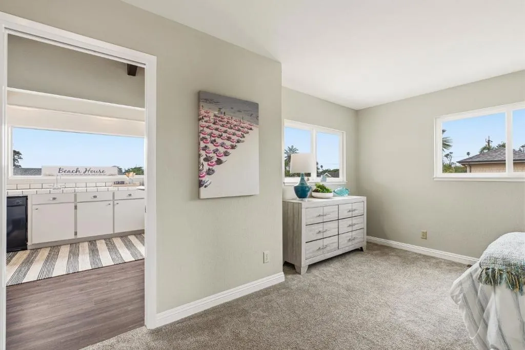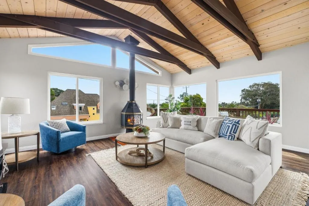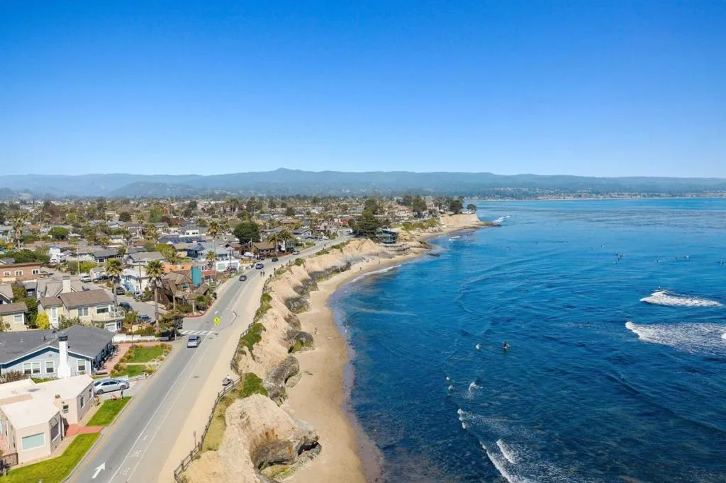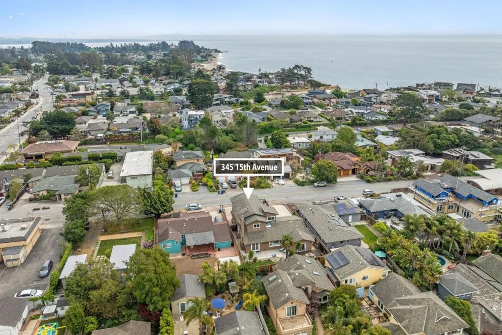 Beach living at its best! Only 6 doors from the oceans edge. Feel the rush of salt air on your skin, and waves crashing moments from your door. This expansive, generous, well maintained coastal home with 2 separate living areas is in the coveted Avenues Area of Santa Cruz, set between Pleasure Point and the Boardwalk. Within easy walking of world-famous surf breaks, neighborhood beaches, cafés, shops, breweries, and the Saturday Farmers Market. It is designed to function as 2 distinct living areas, ideal for multi-generational living, shared ownership, or extra rental income. The main level features a welcoming entry with space for boards and beach gear, a generous open living area with floor to ceiling fireplace, rich dark wood floors, large windows, a separate dining area, two large bedrooms, and 2 updated full baths. The lush backyard includes a private deck and patio for outdoor dining and relaxing. Upstairs, with its own exterior and interior access, is a bright second living space with open-beamed ceilings, a wood-burning stove, kitchen, living room, walls of windows, and ocean views from the extra-large private second-story deck, Bedroom and a full bath complete the upper level. Minutes from Sunny Cove, Blacks, Corcoran Lagoon, and Twin Lakes beaches. RV & boat parking.