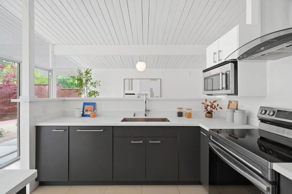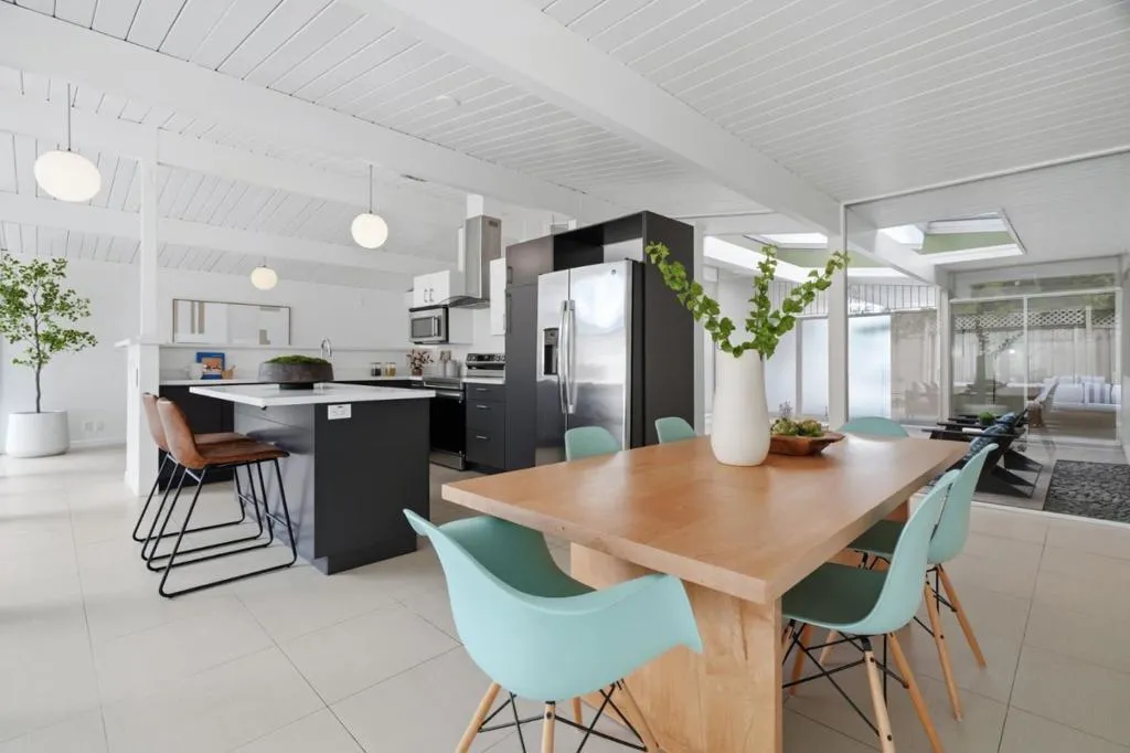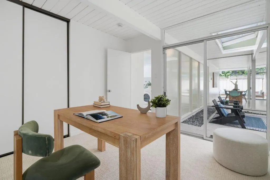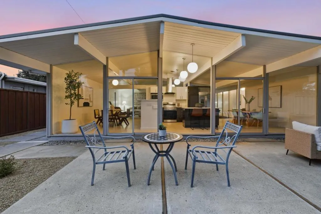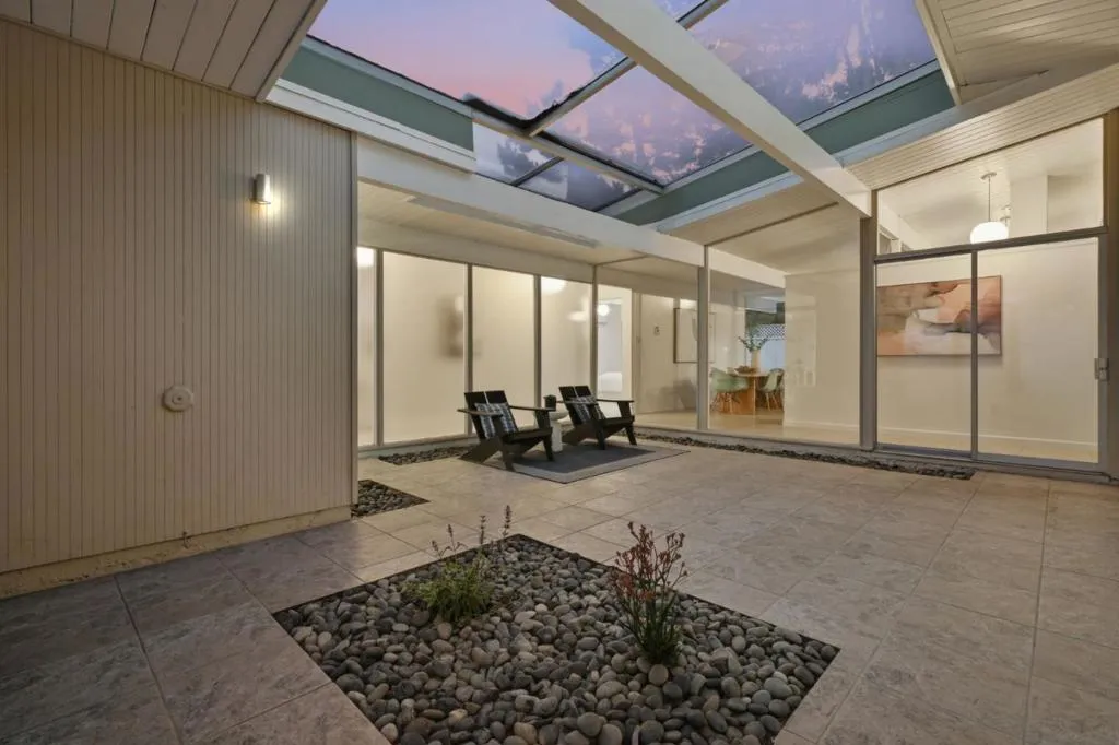 Beautifully updated 4-bedroom Eichler in one of Sunnyvale's most sought-after neighborhoods. A signature central atrium floods the home with natural light, creating a seamless indoor-outdoor connection that's quintessentially California Eichler. The spacious living room anchors the space with a fireplace and a wall of windows framing the backyard, while the upgraded kitchen opens into the family room and out to a private patio surrounded by a lush California coastal garden - ideal for alfresco dining, weekend gatherings, or simply unwinding under the open sky. Moments away from Las Palmas Park and the Sunnyvale Community Center, you'll have easy access to green spaces, playgrounds, and community amenities. Downtown Sunnyvale and Murphy Avenue are just minutes away, with quick access to Highways 280 and 85 for an effortless commute. Top-rated schools nearby include Cumberland Elementary, Sunnyvale Middle, and Fremont High School (buyer to verify).