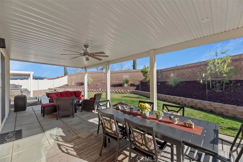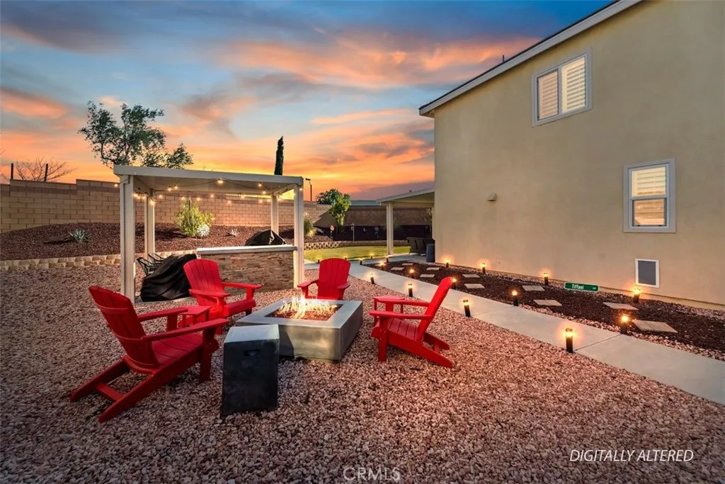 Welcome to this beautifully maintained 4-bedroom, 2.5-bath home located in the desirable Olivewood community. Built in 2022 and owned by just one owner, this home shows true pride of ownership and is in exceptional, like-new condition. Inside, you’ll find a bright and modern layout complemented by custom shutters and upgraded interior paint throughout, creating a clean and elevated feel in every room. The home is equipped with remote-controlled ceiling fans throughout, along with the added convenience of included appliances including washer, dryer, stove, microwave, and refrigerator. Step outside to a fully redesigned backyard made for entertaining, featuring a built-in BBQ, fire pit area, and two patio structures that provide the perfect setting for gatherings or relaxing evenings at home. The epoxy-coated garage flooring adds both function and style, while the spacious 10,000+ sq ft lot offers a large side yard with potential for RV parking. Additional upgrades include a custom-built primary closet for enhanced organization and storage. The home is also equipped with leased solar panels, helping to improve energy efficiency. Located in a growing and sought-after community, this home offers the perfect blend of comfort, upgrades, and outdoor living. Buyer to verify exact Mello-Roos and special assessments via the city of Beaumont or Riverside County property tax portal.