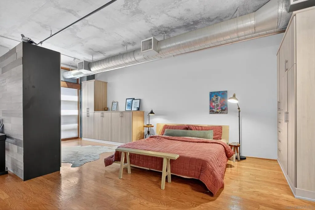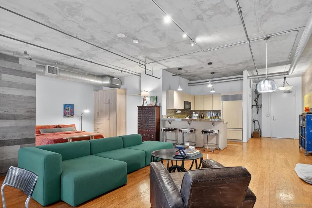 Experience authentic loft-style living in this vibrant 2nd-floor Parkloft residence. Soaring ceilings, hardwood floors, and oversized windows flood the open layout with natural light, offering endless ways to personalize your space. The loft features a spa-like bathroom with a platform tub and walk-in shower, plus a convenient guest bath. Enjoy in-unit laundry, central AC/heat, a sprawling 300 sq. ft. balcony, and a tandem 2-car garage space. Parkloft blends industrial-chic design with modern amenities, including 24/7 concierge, secure entry, fitness center, and a lush courtyard with BBQs, fire pit, and lounge seating. All just one block from Petco Park and steps to the Gaslamp Quarter’s dining, nightlife, and shopping. Located in the heart of East Village, Parkloft combines industrial-chic design with modern amenities. Just one block from Petco Park and steps to the Gaslamp Quarter, dining, and shopping.