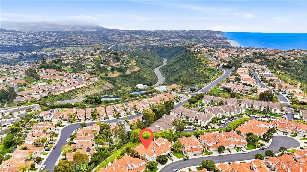 Welcome to 10 Toulon, nestled within the prestigious 24-hour guard-gated community of Laguna Sur. Step through the elegant leaded-glass double doors into a grand entryway with soaring vaulted ceilings and beautiful travertine floors that flow seamlessly through the foyer, all the way to the kitchen. This level features an airy and light-filled living room, a formal dining room, and a spacious kitchen—all designed for comfort and style. The living room boasts a gas-burning fireplace and sliding glass doors opening to a view balcony, perfect for relaxation or entertaining. The dining room, with its tasteful tray ceiling, showcases panoramic day and night views and also opens to the balcony, which is outfitted with a natural gas line for your favorite grill. From here, a staircase leads to the expansive lower patio—ideal for larger gatherings or quiet lounging. The kitchen offers generous storage, a built-in oven and microwave, six burner gas cooktop and a charming dining space with outdoor views. Its tumbled travertine backsplash adds a touch of timeless sophistication. Upstairs, a cozy sitting area with custom built-in shelving leads to a bright guest suite with vaulted ceilings, abundant natural light, and its own ensuite bathroom. On the lower level, double doors open to the primary suite, featuring sliding doors to the private back patio. The luxurious ensuite bathroom includes travertine floors, dual vanities, a spacious soaking tub with scenic views, and a beautifully tiled shower. This level also includes another guest bedroom with patio access and a full bathroom. Across the back of the home, the tiled patio provides the perfect setting for entertaining—from intimate dinners to large celebrations—or simply soaking up the California sun. Residents of Laguna Sur enjoy resort-style amenities including two pools, tennis and pickleball courts, and breathtaking coastal vistas. Perched high above the coastline, you’re just minutes from the beach, boutique shopping, and dining along PCH—the best of coastal living awaits.