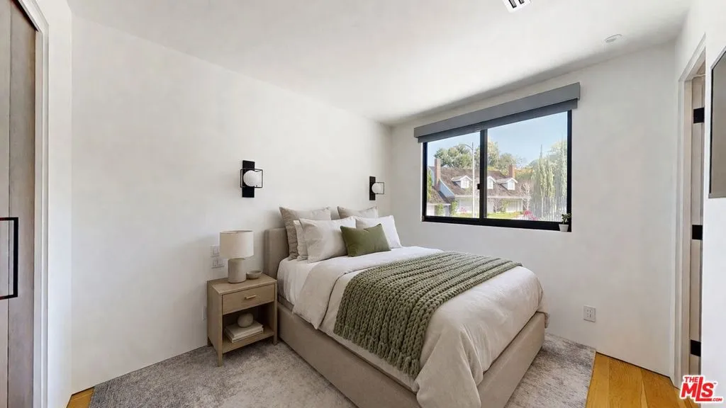Perched atop a knoll on one of the most sought-after streets in the Donas, one of Studio City's most prestigious neighborhoods, this newly renovated contemporary residence captures sweeping panoramic views across the Mulholland Corridor from nearly every room, seamlessly blending timeless Mid-Century design with elevated modern finishes across approximately 3,900 square feet of gated, private living space. A striking entry opens to soaring ceilings and walls of glass that flood the interiors with natural light, flowing effortlessly into expansive living areas including a refined formal living room, a warm and inviting family room with bar and fireplace, and an elegant dining room set just off the sleek, designer kitchen outfitted with high-end appliances. A dramatic glass-filled atrium with approximately 30-foot ceilings serves as a stunning architectural centerpiece, enhancing the home's sense of scale and openness. The main level also offers a versatile en-suite bedroom, ideal for guests, a home office, or staff quarters. Upstairs, the spacious primary suite is a true retreat, featuring dual walk-in closets, a spa-inspired bath with refined finishes, a private balcony, and a sitting area with breathtaking views, while additional bedrooms are generously sized and appointed with en-suite baths and custom-fitted closets. Designed for seamless indoor-outdoor living, retractable windows and Fleetwood sliding doors open to an expansive entertainer's yard with a large terrace for al fresco dining, a sparkling pool, cabana, and built-in barbecue. Ideally located just moments from the Westside, Ventura Boulevard's shops and restaurants, and the scenic hiking trails of Fryman Canyon, and situated within the highly regarded Carpenter Charter School district, this exceptional offering presents a rare opportunity to own a beautifully reimagined home that effortlessly balances architectural character with modern luxury.