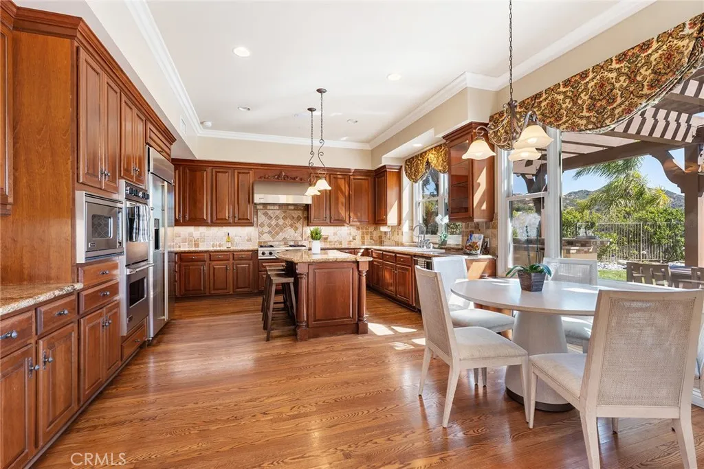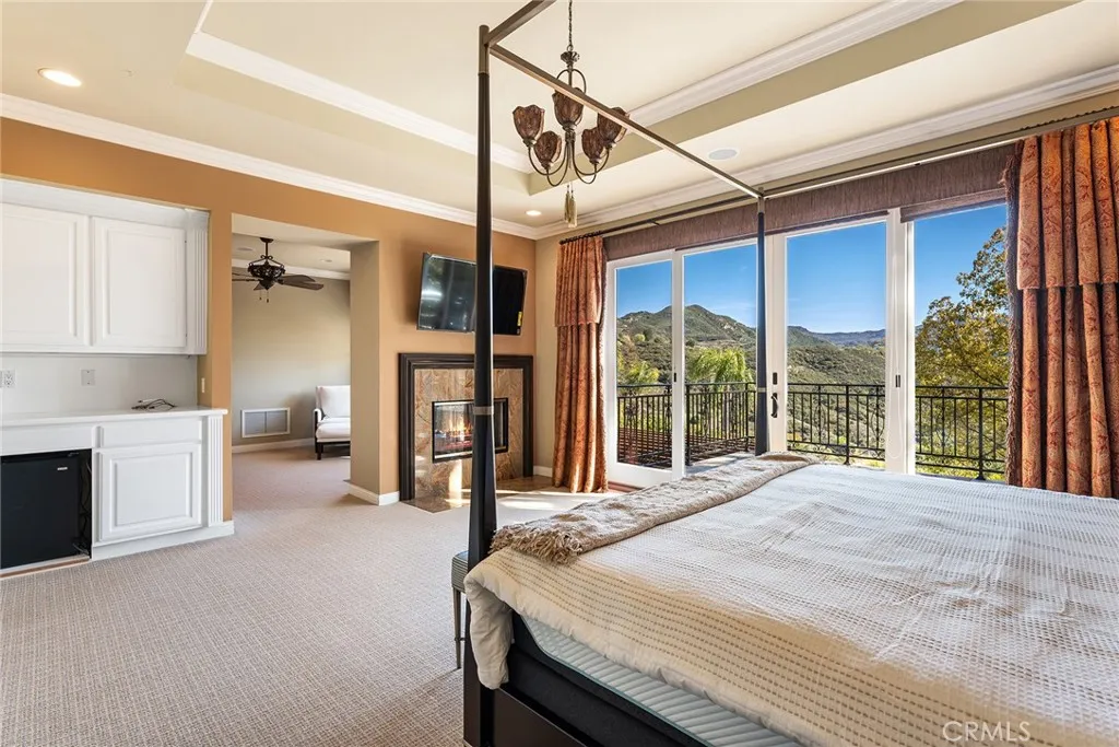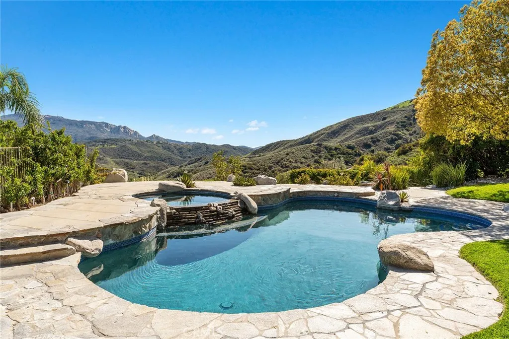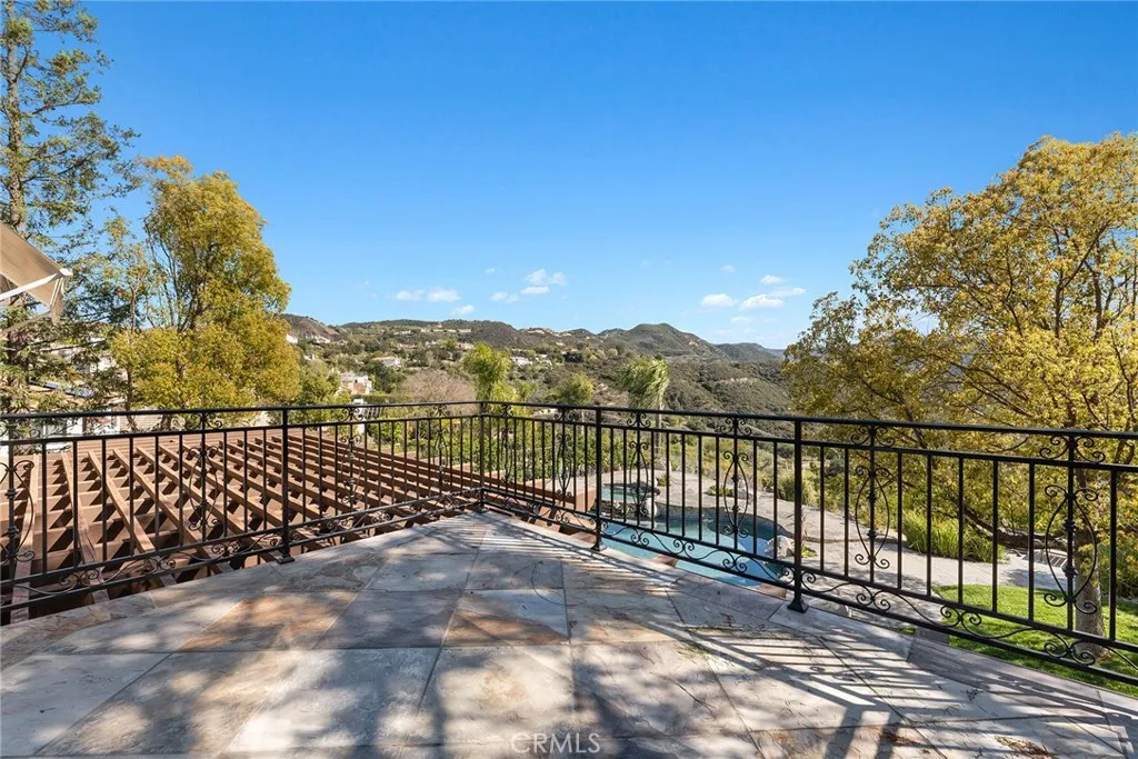 Incredible panoramic view home set in the prestigious guard gated community of Calabasas Park Estates. Light and bright with tons of windows and an open floorplan featuring 5 bedrooms and 5 bathrooms in 5,128 Sq.Ft. of living space. The double door entry leads to a grand foyer which looks directly through the home tothe backyard with gorgeous views. A formal living room is located at the front of the home with a beautiful fireplace at the center. Formal dining room offers achandelier and French doors that open into the side yard. The family room provides a built-in entertainment center, barn doors and another fireplace. A gourmetkitchen features stainless steel appliances, granite countertops, a large center island, a butler’s pantry, and a breakfast nook looking out to the panoramic view.There is a downstairs bedroom with a remodeled bathroom and French doors leading into the side yard. Upstairs, you are immediately greeted by a grand landingwith built-in desk, a vast primary suite and 3 secondary bedrooms. The primary suite retreat exudes luxury with a separate seating area divided from the bedroomby a two-sided fireplace, a ‘kitchen’ area with mini fridge, tons of built-in storage, and a romantic balcony overlooking the backyard and vast mountain views. Theprimary bathroom offers a separate bathtub with incredible views, walk-in shower, toilet closet, double vanity, plenty of storage and a large walk-in closet, whatmore could you ask for! Two secondary bedrooms share a jack-and-jill bathroom. The third secondary bedroom is a mini suite of it’s own with a walk-in closet andprivate ensuite bathroom. TWO laundry rooms, both upstairs and downstairs, plus a large 3-car garage. A dream backyard oasis offers unobstructed, panoramicviews of the mountains. Boasting an outdoor kitchen, covered patio, sparkling pool with spa, kid’s playground, lush lawn, and putting green, this yard cannot bebeat! Located within the award-winning Las Virgenes School District and just minutes from shopping and dining at the Calabasas Commons. Move-in ready withpartial furnishing option.