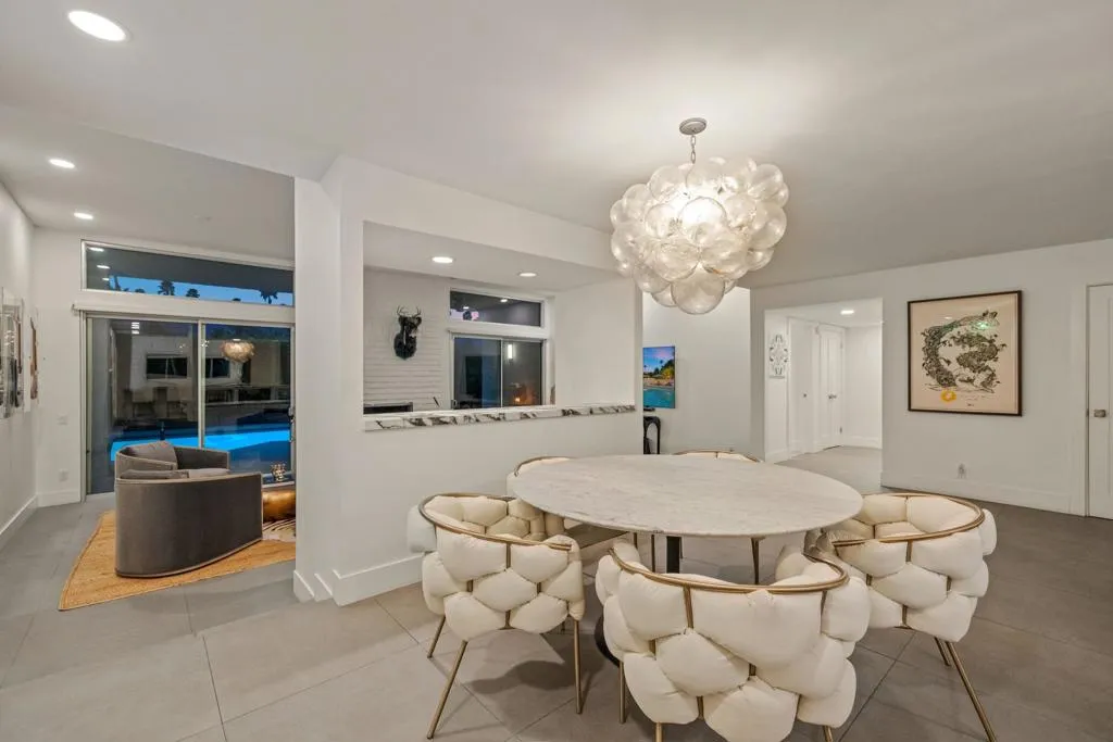 Set in the highly sought-after enclave of South Palm Desert, this exceptional residence captures the essence of elevated desert living. Framed by stunning mountain views and filled with natural light, the home offers a seamless blend of comfort and design with effortless indoor-outdoor flow. Thoughtfully enhanced with upgraded appliances and designer fixtures throughout, every detail reflects quality and modern sophistication. The property is equipped with solar, adding energy efficiency to its overall appeal. The well-designed layout includes two bedrooms plus a versatile flex room, ideal for a home office, den, or guest overflow. Expansive living spaces open to private outdoor areas perfect for entertaining or quiet relaxation, while gated side access provides RV parking--a rare and highly desirable feature. All just minutes from the renowned shopping and dining of El Paseo, this home offers the perfect balance of lifestyle, convenience, and value. Whether as a full-time residence or seasonal retreat, this is a rare opportunity to experience one of the desert's most desirable settings.