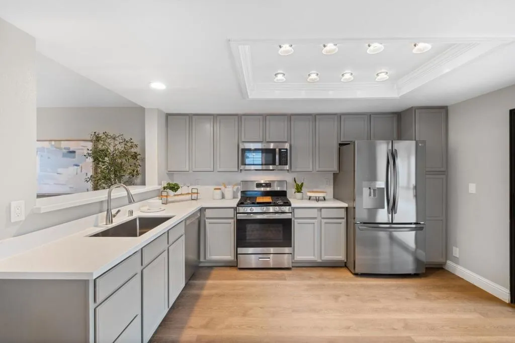 *Soaring ceilings, abundant natural light, and a beautifully open layout define this move-in-ready North Valley PUD offering the rare advantage of land ownership with low HOA. The dramatic living room welcomes you with a striking vaulted ceiling, oversized windows, and a cozy fireplace that creates an airy yet warm gathering space. *The spacious kitchen features granite countertops, stainless steel appliances, a breakfast bar, and ample cabinetry, with room for additional dining. Upgraded flooring throughout enhances the homes modern feel. *Upstairs, the bright primary suite features a high ceiling, dual-sink vanity, and generous closets, with all bedrooms on the same level. Custom closet systems, central A/C and heating, and an in-home laundry area add convenience. Smart features include lighting, Ring doorbell, and garage door controls. *Step outside to a charming, low-maintenance private backyard. The side-by-side two-car garage with built-in storage racks and an EV charging outlet. *Located in a desirable North San Jose community, just a short walk to Townsend Park and San Jose Municipal Golf Course, and minutes from 99 Ranch, H Mart, Costco, Sprouts, and Great Mall. Easy freeway access and close proximity to Nvidia, Google, Apple, and Supermicro.
