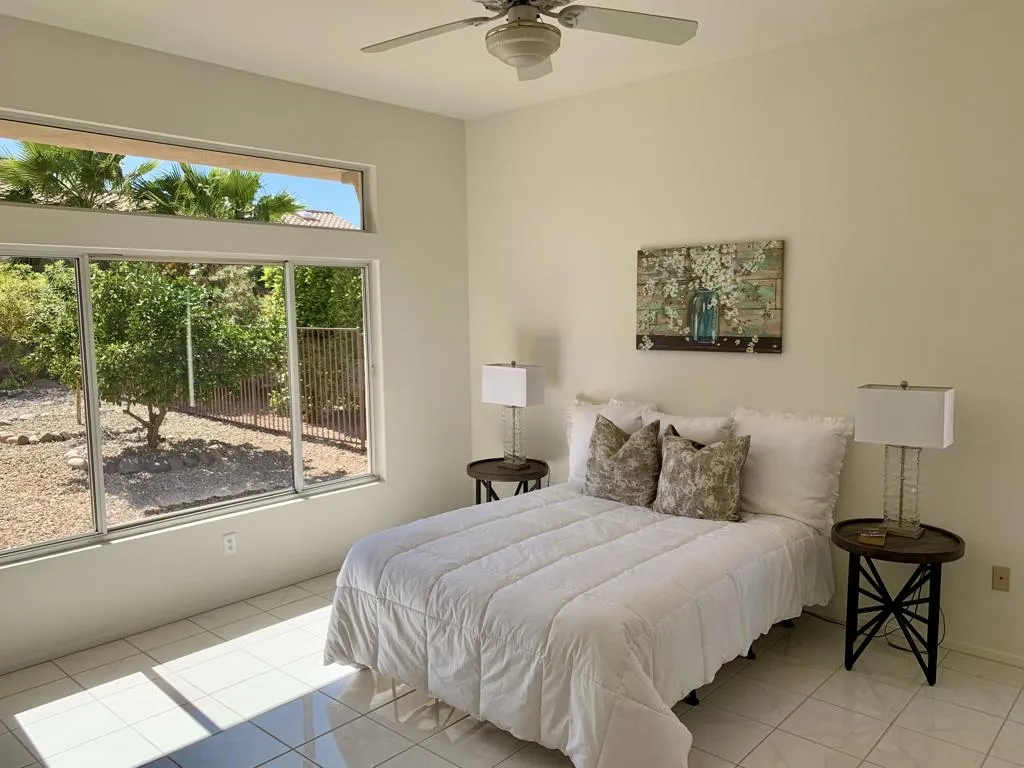 Welcome to your new home in the vibrant 55+ Sun City Palm Desert community! This charming long-term rental comes unfurnished and offers two spacious bedrooms and two well-appointed bathrooms, perfect for comfortable living. Nestled in a serene neighborhood, this property provides a tranquil retreat with the added convenience of the landlord covering gardening. Cable and WiFi are included through the hoa. The open floor plan creates a welcoming atmosphere, ideal for entertaining or simply relaxing. Large windows fill the space with natural light, highlighting the beautiful interior. Step outside to enjoy the meticulously maintained garden, a perfect spot for morning coffee or evening relaxation. Sun City Palm Desert is renowned for its active adult community, offering a plethora of amenities including golf courses, fitness centers, and social clubs. Nearby, you'll find popular spots like the Boulevards Restaurant and the Westfield Palm Desert shopping center, providing endless entertainment and dining options. Don't miss the opportunity to make this wonderful property your new home. Experience the best of Palm Desert living in a community that offers both tranquility and excitement. Unfurnished, annual lease.