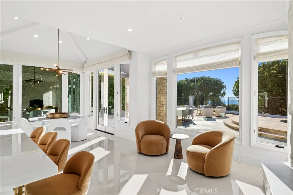 Set within the guard-gated enclave of Pelican Point, this stunning coastal residence captures sweeping ocean and golf course vistas, delivering turnkey luxury at every turn, and is offered fully furnished. Completely renovated throughout, the interiors showcase an elegant contemporary palette with refined finishes, clean lines, both formal and casual living spaces, grand hallways, a sophisticated wine room, and thoughtfully curated details for effortless living and entertaining. Step into an expansive primary retreat designed for everyday indulgence—an airy, light-filled sanctuary anchored by a cozy fireplace, private sundeck, and ocean views. The suite offers his-and-her accommodations, well-appointed for the daily routine, creating space, privacy, and a dedicated office, which could be used as a fifth bedroom. The spa-inspired bath in white marble sets a timeless tone and a calming layout that feels like a private resort. Three additional bedrooms feature en-suite baths, ideal for families and guests. An open chef’s kitchen is a true showpiece, featuring top-of-the-line appliances, custom cabinetry, and abundant prep and storage space. A generous center island offers seating and serves as the perfect gathering spot for entertaining, while the sunny eat-in area is warmed by a charming fireplace—ideal for casual breakfasts and everything in between. Light-filled living spaces flow seamlessly into outdoor areas, where shimmering water and manicured fairways create a breathtaking backdrop from sunrise to sunset. This exceptional property presents a rare opportunity to move right in and begin enjoying the Pelican Point lifestyle—privacy, security, and world-class surroundings—without compromise.