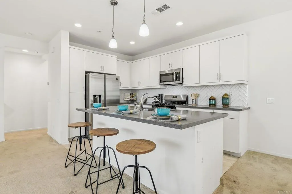 Priced to sell between $640,000 and $650,000.VA approved complex. Welcome to 5479 San Alejandro, a beautifully maintained 3-bedroom, 2.5-bathroom townhome offering 1,600 sq. ft. of modern living space in one of San Diego's most convenient communities. Built in 2020, this stylish tri-level home combines comfort, functionality, and contemporary design. The spacious kitchen offers stainless steel appliances, and a center island perfect entertaining or family meals. End unit with a larger front yard ideal for outdoor play and pets. Two car garage, in unit laundry. Located in a desirable community with a sparkling pool and easy access to the 905 freeway,you'll love being close to school and just a short drive to the beaches and downtown San Diego. This move-in ready home offers the perfect blend of style, space, and location. don't miss it!