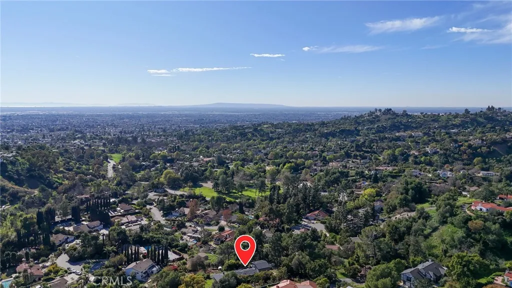 This is your opportunity to tour a hidden gem in La Habra Heights before it is gone! Tucked at the end of a private road, 1918 Chandos Lane offers sweeping Catalina, golf course, and rolling hills views in a peaceful rural setting with convenient access to Los Angeles and Orange County. Designed to maximize natural light and scenery, the home features an open floorplan with spacious rooms and every room oriented to capture the views. The kitchen is the heart of the home with abundant cabinetry, 36 inch wolf range, a large center island, and an open flow into the expansive family room that features custom built-ins. Double sliders extend the living space to over 800 sq ft of Trex decking, perfect for entertaining. A formal dining room connects seamlessly to the formal living room with a classic mid-century fireplace. Upstairs, the approx. 600 sq ft primary suite includes a balcony, gas fireplace, walk-in closet, and ensuite bathroom. The downstairs includes two updated bathrooms, two oversized secondary bedrooms (approx. 12’ x 15’ each), and a homework desk nook to complete the layout. A flexible bonus room with an outside double door entrance is ideal for a home office, gym, or storage, but is currently used as a game room. Plus, there is a separate laundry room and ample storage throughout the property. Recent upgrades include a new roof with 33 owned solar panels (NEM 2.0), EV charger, new heat pump HVAC, and an upstairs mini-split system. The usable land supports agriculture, horses, chickens, or other pets and livestock, and the terraced garden areas include 5 varieties of mature citrus trees, macadamia nut trees, along with younger stone fruit and fig trees. Enjoy summer music from the nearby park and consider joining the world class Hacienda Golf Club. A rare opportunity to enjoy views, privacy, land, and modern efficiency in sought-after La Habra Heights.