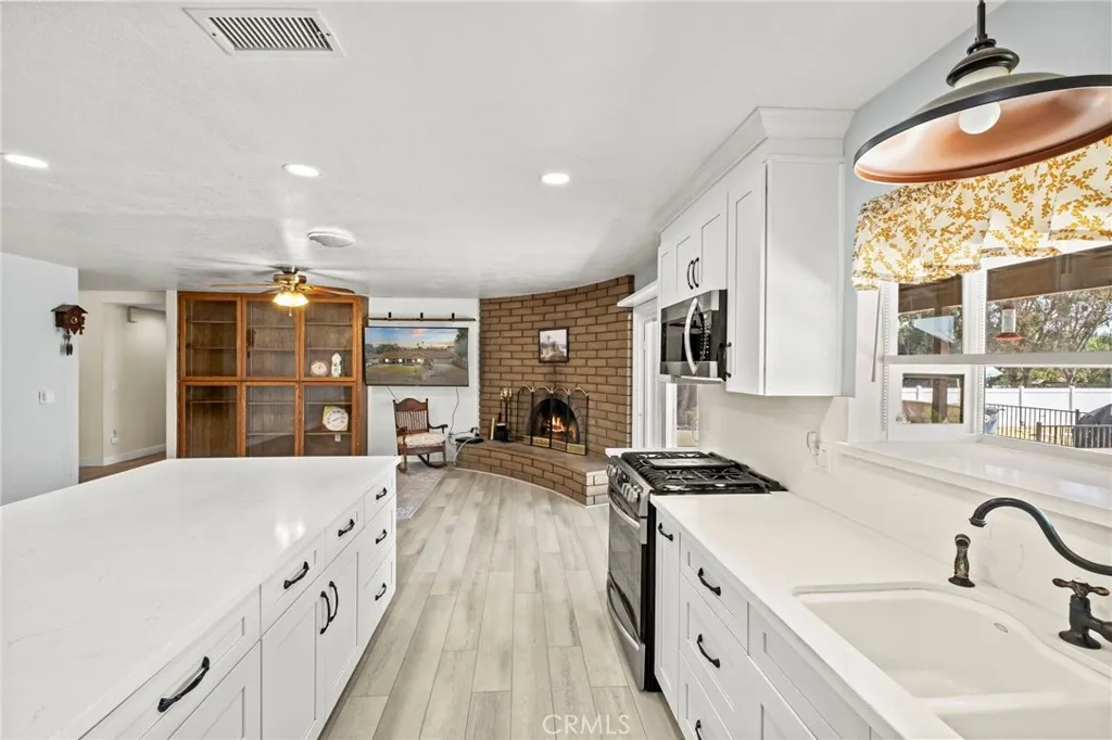 Country Living Near the City!! Welcome to this charming Ranch-Style home situated on a generously sized lot of almost half an acre, offering the perfect blend of comfort and space and modern updates. This inviting home features three spacious bedrooms and two well-appointed bathrooms, providing ample room for both relaxation and everyday living. The heart of the home is the beautifully updated kitchen, designed with both style and functionality in mind-perfect for cooking, entertaining and gathering with family and friends with new cabinetry, new quartz counter tops, updated stove, microwave and new sink and faucet. Enjoy the flexibility of a large open concept and welcoming living room centered around a charming brick fireplace and a separate family room perfect for entertaining. The home has updated Luxury Vinyl flooring in common areas that adds a fresh contemporary feel to the home. Updated windows enhance natural light while improving energy efficiency, creating a bright and welcoming atmosphere in every room. The home has updated Blinds, New paint, Quartz windowsills and so much more. With the expansive lot and mature fruit trees which include: 2 Orange Trees, 1 Tangerine, 2 Apple (Fuji and Gala) 2 Apricot, 2 Pear, 3 Plum, and 2 Avocado, there's plenty of outdoor space to enjoy, whether you envision gardening, entertaining, or simply relaxing in your own private retreat. This home combines classic Ranch-Style charm with thoughtful upgrades, making it truly move-in ready. The driveway is large enough for your RV. The 10x20 storage in the backyard stays. Some photos are virtually staged to show the home's potential.