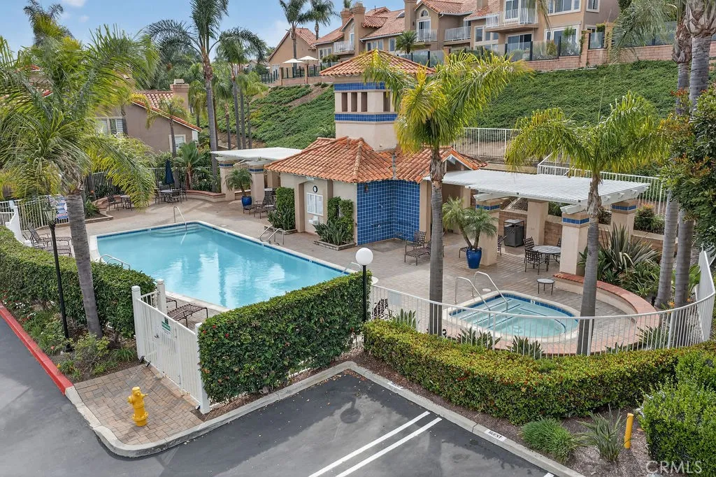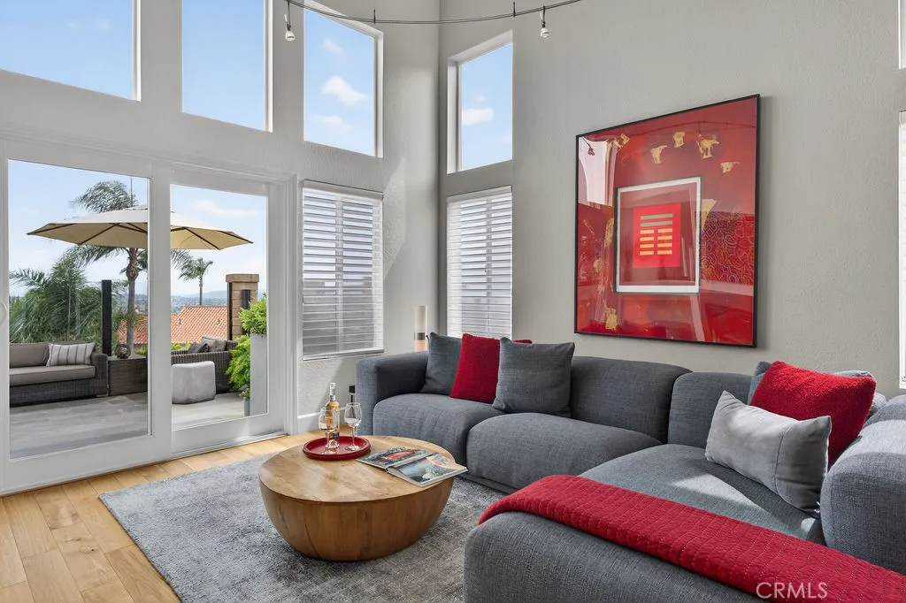Welcome to your dream home in the coveted Niguel Summit! An exceptional end-unit residence filled with abundant natural light and showcasing breathtaking panoramic views of the ocean, mountains, and sparkling city lights. Extensively remodeled with a designer’s eye, the home has been thoughtfully reimagined into an open concept living space, creating seamless flow and striking details. A custom concrete fireplace and statement staircase anchor the space, while frosted glass doors and curated lighting throughout add a refined, contemporary edge. At the heart of the home, the gourmet kitchen is a true showpiece. Fully redesigned with custom cabinetry, quartz countertops and backsplash, imported Italian fixtures, and a sleek stainless steel sink. Outfitted with high-end appliances, including a Wolf dual-fuel range and Wolf speed oven/microwave, this kitchen blends elevated design with everyday functionality. The primary suite offers a private retreat, featuring a beautifully redesigned ensuite bath with a spa tub and shower, custom cabinetry, premium fixtures, and a California Closets system. The secondary bedroom is equally well-appointed with custom built-in cabinetry and a Murphy bed, plus an upgraded bath with rain shower and elegant finishes. Additional highlights include hickory-engineered wood flooring throughout, custom baseboards, silhouette blinds, and custom shutters. Modern living is effortless with integrated smart home features, an audio visual system, and Nest-controlled climate and lighting. Step outside to your private patio, with ocean views, beautiful surroundings, porcelain tile, and a custom wrought iron gate. The finished garage offers epoxy flooring, custom cabinetry, and a permitted EV charging station. Ideally located just steps from the community pool and spa, and moments from world-class hiking and biking trails leading to coastal bluffs, this home is minutes from renowned beaches, fine dining, and premier shopping. A rare opportunity to own a truly turnkey, view home in one of Orange County’s most sought-after communities.