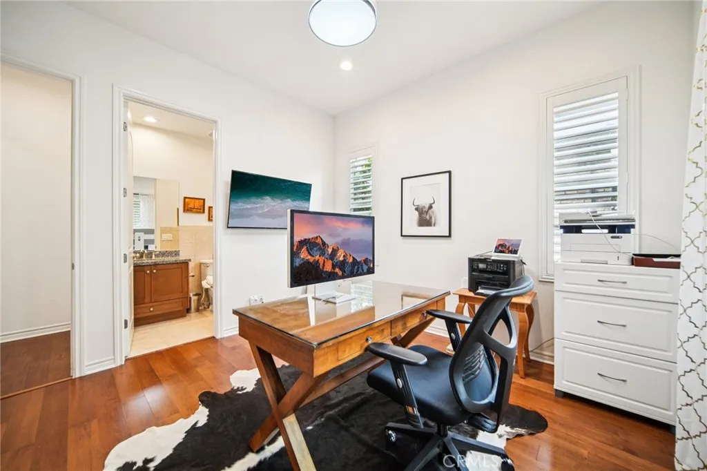 Welcome to this stunning residence nestled on a highly sought-after cul-de-sac in the prestigious Pavilion Park community of Irvine. Thoughtfully designed and beautifully appointed, this exceptional home offers 4 spacious bedrooms, each with its own private en-suite bathroom—providing ultimate comfort and privacy for family and guests alike. From the moment you enter through the elegant double doors, you’re greeted by refined living spaces, including a formal dining room perfect for hosting, an expansive family room, and a seamless indoor-outdoor flow with a charming California room. The main level also features a luxurious primary suite and a generously sized guest bedroom, ideal for multigenerational living or visiting guests. At the heart of the home is a chef’s dream kitchen, complete with an oversized island, premium finishes, and ample space for gathering and entertaining. Whether hosting lively celebrations or intimate dinners, this space is designed to impress. Upstairs, discover two beautifully appointed bedrooms, along with a versatile entertainment loft and private balcony—perfect for movie nights, gaming, or simply relaxing with loved ones. Ideally located just minutes from premier shopping, dining, and major employment centers, this home offers convenient access to Irvine Spectrum, South Coast Plaza, and the stunning coastal destinations of Newport Beach and Laguna Beach, as well as proximity to top-rated universities and colleges. This is a rare opportunity to own a truly exceptional home in one of Irvine’s most desirable neighborhoods—offered at an incredible value. Don’t miss it!