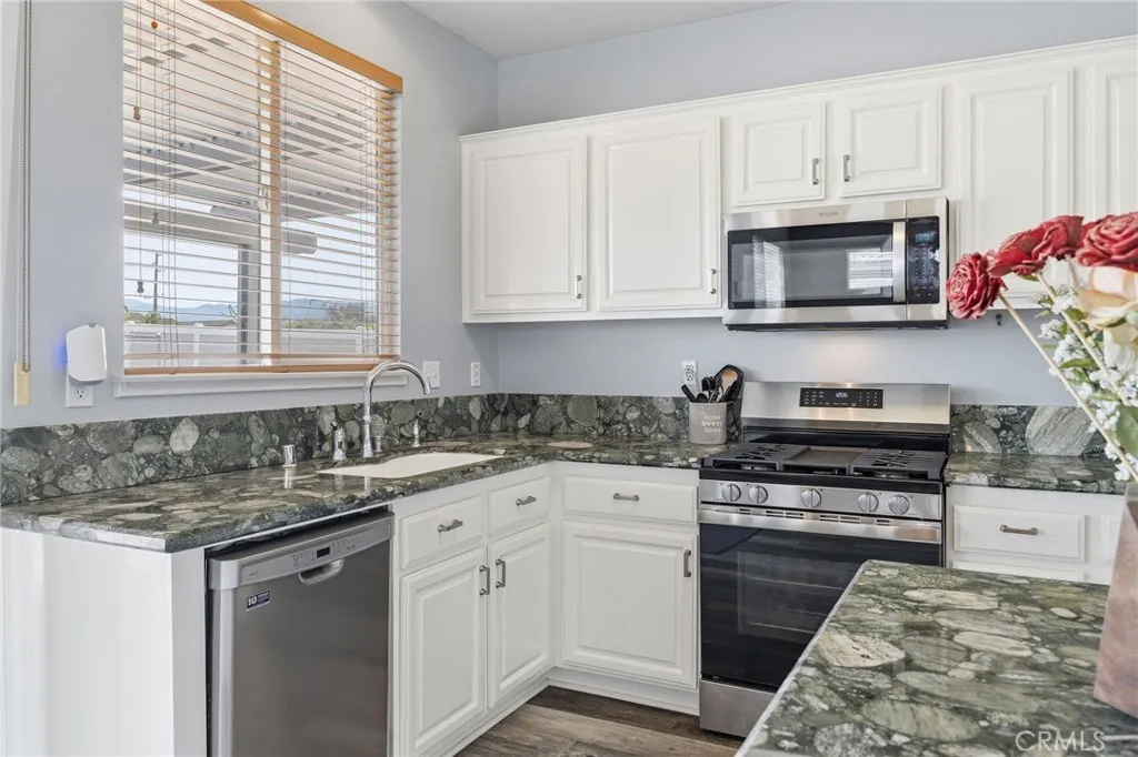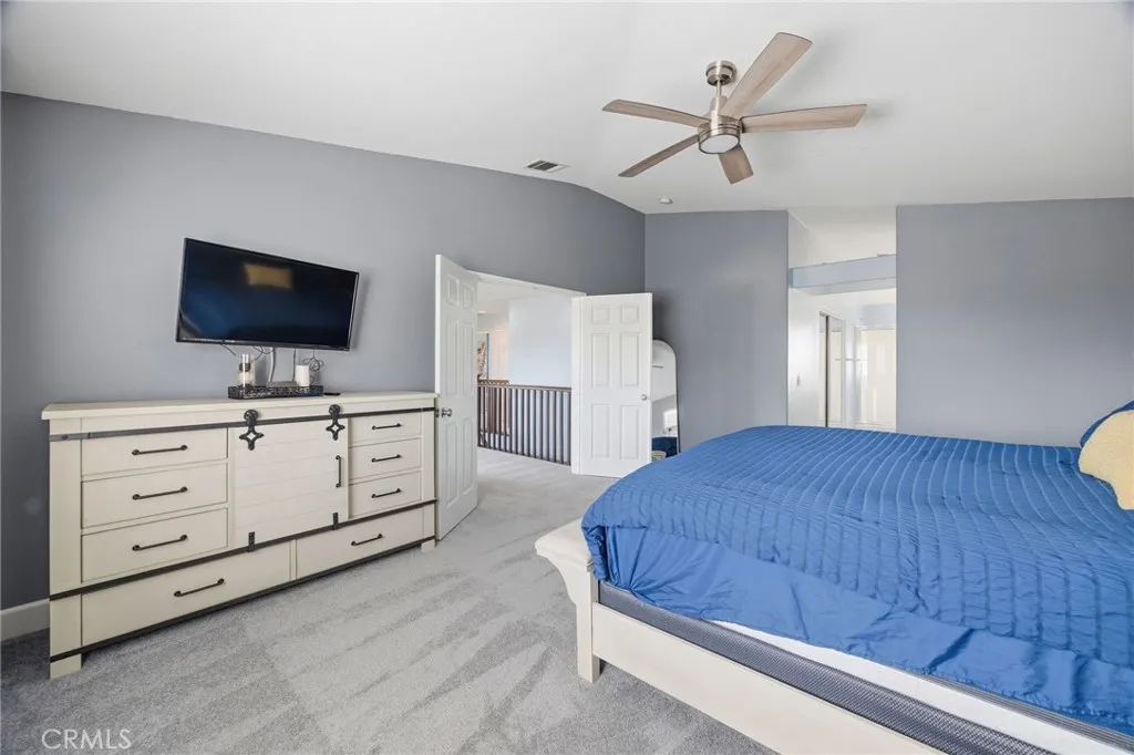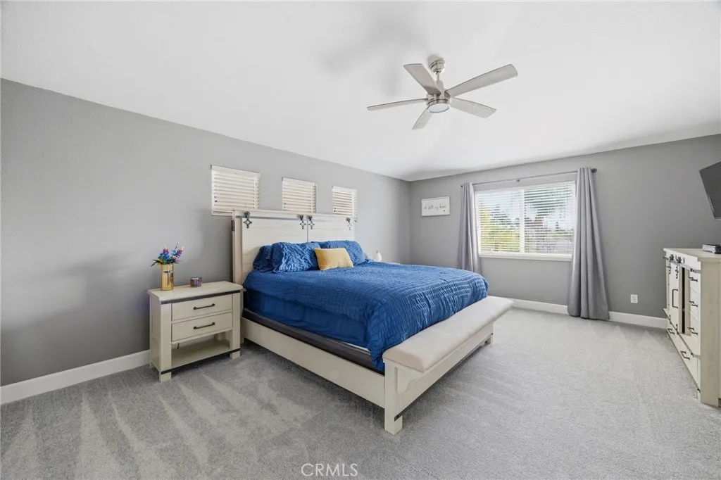 Energy-efficient living meets modern comfort in this beautifully upgraded home, featuring a fully paid solar system and a Tesla Powerwall—a rechargeable lithium-ion battery that stores energy from solar or the grid, providing reliable backup power and greater energy independence. Designed with sustainability in mind, the property also includes artificial turf and a water-efficient drip irrigation system for low-maintenance outdoor living. This spacious 4-bedroom, 3-bathroom home is nestled in a highly desirable neighborhood with convenient access to the 91, 71 and 15 freeways, making daily commuting a breeze. Step inside to a thoughtfully designed floor plan with defined living spaces that balance comfort and functionality. The home offers a 3-car garage, impressive 12x50 RV/boat parking, and an extended driveway with room for up to four additional vehicles—ideal for those who need extra space. The kitchen features, granite countertops, stainless steel appliances (including oven, microwave, and dishwasher), and a built-in wine cooler—perfect for entertaining. The main level also includes a bedroom and full bathroom, ideal for guests or multi-generational living. Upstairs, a generous loft/bonus room provides flexible space for a home office, media room, or play area. All bedrooms are well-sized and equipped with ceiling fans. The primary suite offers a relaxing retreat with a walk-in closet, dual vanities, a separate shower, and a soaking tub. Additional highlights include dual-zone A/C and heating for personalized climate control on each level. The fully paid solar system paired with the Tesla backup battery maximizes efficiency and peace of mind. The backyard is designed for both relaxation and ease, featuring artificial turf, pavers, drip irrigation, a covered patio, gas fire pit, two dog runs, and a storage shed. With no rear neighbors, you’ll enjoy added privacy. Located within walking distance to a neighborhood park and just minutes from shopping and dining, this home also benefits from no HOA and low taxes—making it an exceptional opportunity you won’t want to miss.