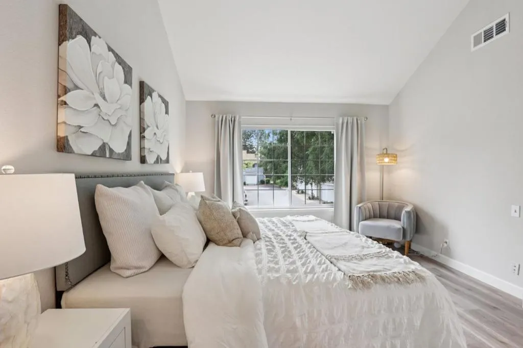 Experience modern living in this beautifully updated 2-bedroom + bonus room or loft, 2-bath corner unit in San Joses desirable Evergreen community. Bright and airy with soaring ceilings and an open layout, this approximately 1,050 sq. ft. home features a versatile loft perfect for a third bedroom, home office, or creative space. Designed for comfort and convenience, it includes primary walk-in closet, 2 shower over tubs, other rooms - loft, in-unit laundry, a private one-car garage, and access to a sparkling community pool and spamaking it an ideal starter home. Thoughtfully updated between 20242025, the home showcases a renovated kitchen with new cabinets, quartz countertops, vented range fan, and brand-new appliances. Enjoy fresh interior paint, new lighting fixtures, popcorn ceiling removal, and upgraded bathroom fans. Major improvements include a new A/C and heat pump furnace, replaced windows, renovated guest bath, and an updated fireplace with gas lighter and fire glass. Sleek window treatments, plantation shutters, and a smart home system complete this move-in-ready gem near top-rated schools, Evergreen Valley College, shopping, and dining!