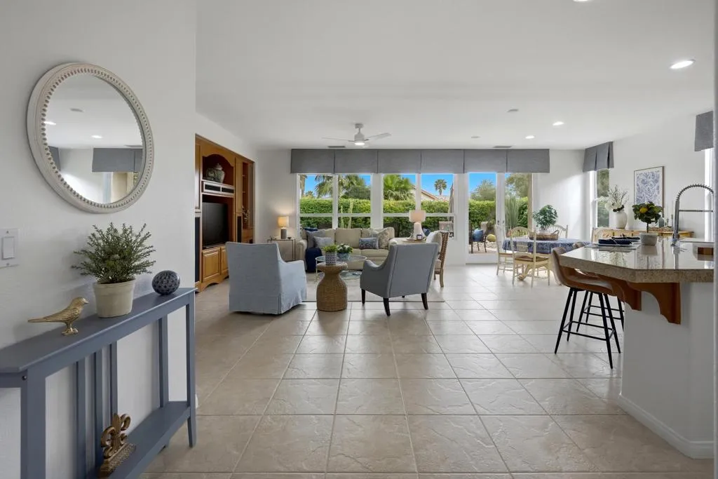 Rare Casita Home | Monterey Model | Private Courtyard | Trilogy La QuintaIdeally positioned within Trilogy La Quinta, this highly sought after Monterey model offers a detached casita, gated courtyard entry, and a flexible layout designed for elevated desert living.A private portico entry opens to a serene courtyard, creating a refined indoor outdoor arrival and ideal separation between the main residence and casita. The home offers three bedrooms and three bathrooms including the casita, plus a versatile den suited for guests, office, or additional living space.The kitchen opens to the great room, forming a central gathering space enhanced by new KitchenAid stainless steel appliances including a five burner gas cooktop, hood, convection microwave combination, and warming drawer. Tile flooring runs throughout the home and casita, complemented by fresh paint, custom window coverings, built in media center, and new ceiling fans.The primary suite features a bay window, spacious closet, dual vanities, and walk in shower. Additional upgrades include new HVAC in the main house, new water heater, new windows in the great room and french doors that open to the patio.Outdoor living includes a private courtyard and extended patio surrounded by lush, low maintenance landscaping, offering multiple areas to relax and entertain.Residents of Trilogy La Quinta enjoy access to golf, clubhouse, fitness center, pools, tennis, pickleball, and a vibrant resort lifestyle.