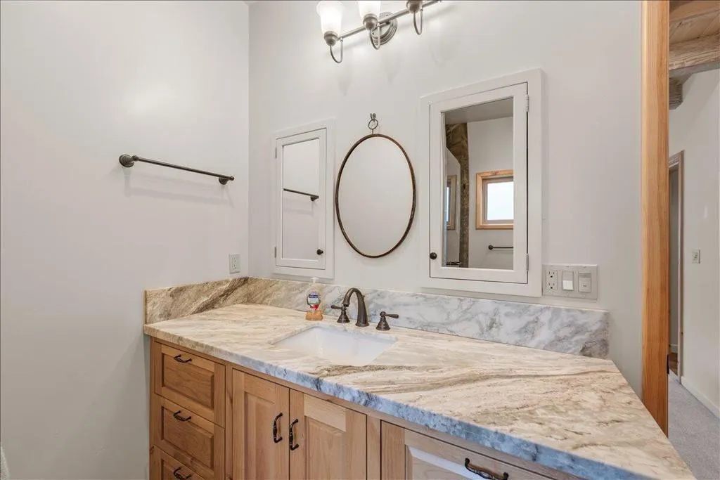 Stunning Mountain Retreat with Panoramic Forest and Lake Views in Fawnskin, CA Nestled in the heart of the San Bernardino Mountains, this gorgeous 2019-built home offers breathtaking mountain and lake views that will captivate you from the moment you arrive. Wake up to spectacular sunrises over the water and enjoy mesmerizing star-filled night skies that only a mountain setting can provide. The rear of the home features an expansive Trex deck with elegant wrought iron railings, perfectly positioned for enjoying your morning coffee while taking in the lake views. Surrounded by lush national forest, this private oasis feels like a true escape yet is conveniently located in desirable Fawnskin. Inside, the home shows like new with premium finishes throughout. Karndeen flooring flows seamlessly through the open living spaces, complemented by vaulted beamed ceilings and abundant windows that flood the home with natural light. Custom lighting, dual-pane windows, and Louisiana Pacific Smart Side exterior siding highlight the quality construction. The chef's kitchen boasts custom granite counters and backsplash, paired with upscale appliances and custom fixtures. Three large master suites, each with its own bathroom featuring custom fixtures, provide ultimate comfort and privacy for family or guests. Additional highlights include a heated concrete driveway, rain gutters, and an awesome back deck that's ideal for entertaining or simply relaxing amid the beauty of the mountains. Brand new furnace and tankless water heater. The build up has been finished to be livable with it's own bathroom. Approximately 400 additional space of living area. Bringing the square footage up to over 2,400. This turnkey mountain home is ready for you to create lastingmemories in one of Big Bear's most scenic areas.