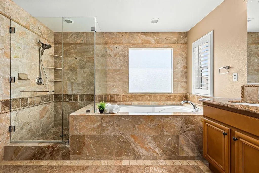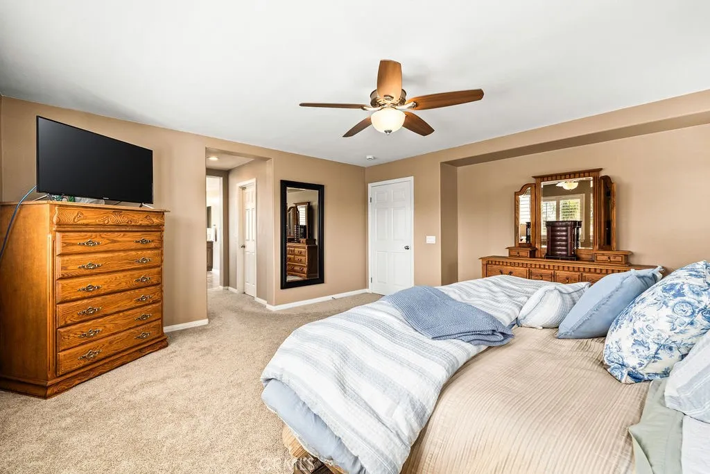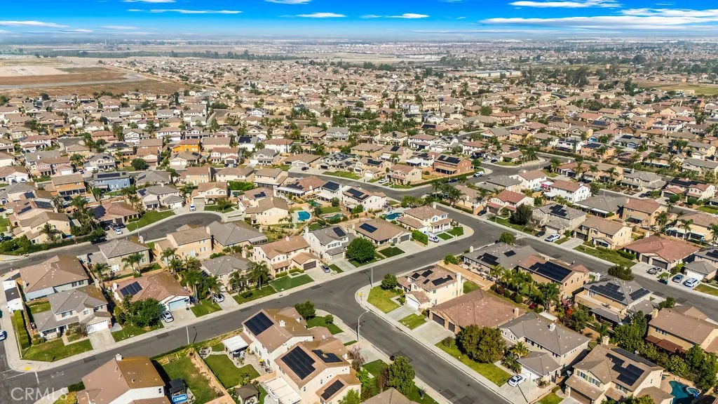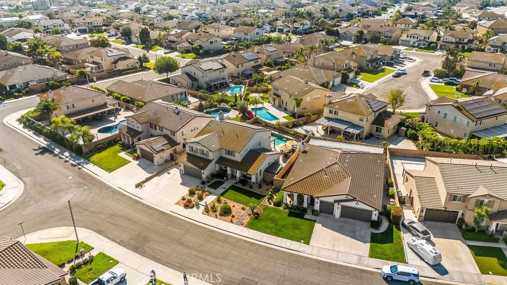 Welcome to this gorgeous 5-bedroom, 3-bathroom pool home located in beautiful Eastvale . As you enter, you’re greeted by a spacious living room and formal dining area with soaring vaulted ceilings that create an open and inviting atmosphere. The kitchen is perfect for family gatherings and dinner nights, offering plenty of space and opening directly to the large family room for easy entertaining. The home features a convenient downstairs bedroom and full bathroom, ideal for guests or multi-generational living. Upstairs you’ll find four additional bedrooms, including a huge primary suite with a beautifully updated, spa-like bathroom and a tech center. This home has been beautifully upgraded throughout with new flooring, remodeled bathrooms featuring granite countertops and travertine flooring, and high-quality finishes throughout. Step outside to the amazing backyard designed for entertaining, complete with a large pool and spa, plus a built-in BBQ island that makes the space feel like your own private resort. Additional highlights include fully paid solar, security cameras, alarm system, lighted front walkway, and extra storage under the stairs. The front yard is finished with beautiful artificial turf for great curb appeal and low maintenance. Don’t miss this stunning home — it won’t last!