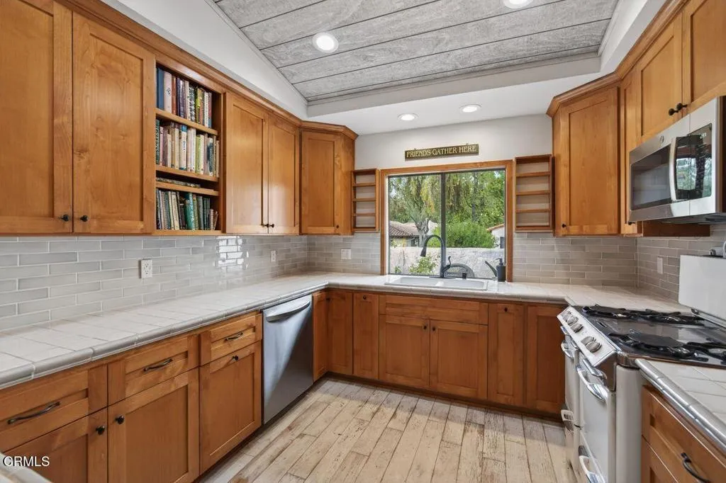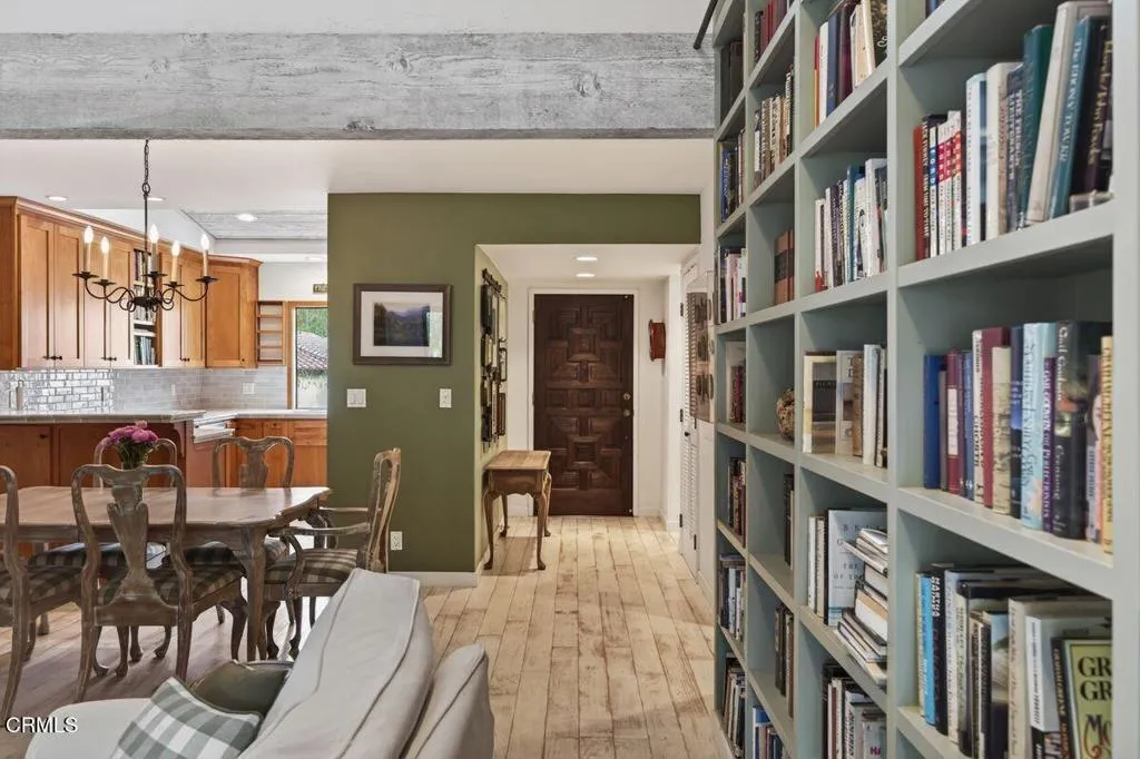 This beautifully appointed 2-bedroom, 2-bath home is tucked into one of Ojai's most beloved communities, the Hitching Post.The heart of the home is the open living and dining area. Vaulted ceilings, wide-plank hardwood floors, and a cozy fireplace offer the kind of warmth and character rarely found in condo living. The floor-to-ceiling built-in shelves are perfect for the avid reader or for displaying a curated collection. Sliding glass doors connect the indoor entertaining space to a private patio and garden.The updated kitchen features maple cabinets and a charming vintage O'Keefe and Merritt gas stove alongside modern stainless steel appliances. The kitchen window looks out to the front patio, with the Topa Topa mountains visible in the distance.The spacious primary bedroom is a true retreat, complete with vaulted beamed ceilings, patio access, and an updated en suite bath appointed with travertine tile, a deep soaking tub, and a separate walk-in shower.Located a short drive from local restaurants, independent shops, and hiking trails whether you head toward downtown Ojai or wander into Meiners Oaks.