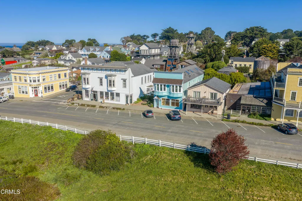 Positioned in the very center of Mendocino Village, the iconic 'Golden Goose' building presents a rare opportunity to acquire a legacy asset with both immediate functionality and future upside. Steeped in local history, this landmark has continuously evolved with the community. Once home to a classic drug store and soda fountain, later became a general store, an acclaimed home furnishings destination, and most recently, a celebrated gallery space. Following a comprehensive rebuild in 2012, the property seamlessly blends preserved historic architecture with modern infrastructure, creating a turnkey canvas for today's investor or entrepreneur. Encompassing approximately 4,000+/- square feet, the building is thoughtfully configured into four suites, offering flexibility for multiple income streams or a cohesive single-user concept. The ground floor captures prime visibility with Main Street frontage, large picture windows, and dual access from Albion Street--ideal for retail, hospitality, or a flagship brand presence in one of the most visited coastal villages in Northern California. The upper level introduces an increasingly rare opportunity in Mendocino: two private suites with conditional approval for residential use. Currently, the property is undergoing permitted improvements, including the addition of an employee break room within the ocean-view suite--strategically designed to also function as a future kitchen should residential use be pursued through permitting. This intentional upgrade enhances both immediate commercial utility and long-term adaptability. Character and craftsmanship are evident throughout, with hardwood floors, vaulted ceilings, artisan details, and a facade that honors the building's historic roots. Modern systems including forced air heating, ADA-compliant features, CAT5 cabling, and interior sound support a wide range of business or mixed-use applications. This is more than a building, it's a platform for vision. Whether reimagined as a flagship commercial presence, a mixed-use investment, or an elevated live/work coastal retreat, this Mendocino landmark is ready for its next chapter.