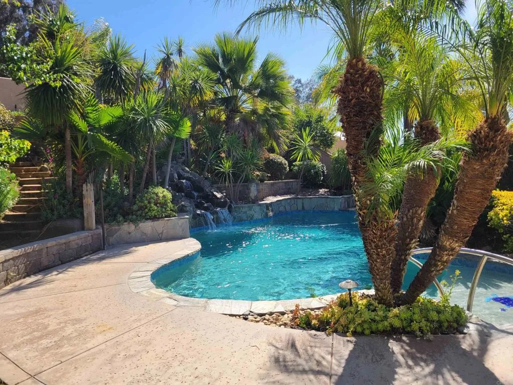 PROFESSIONAL PHOTOS COMING SOON. Seller will entertain offers between $1,299,888 to $1,349,888. Welcome to this exceptional and rarely available home in the highly sought-after Oakstone community in Escondido. Nestled on a quiet cul-de-sac within an intimate neighborhood of just 32 homes, this property offers the perfect blend of privacy, safety, and luxury living. This stunning single story residence with an upstairs loft/office features soaring ceilings throughout, creating an expansive and airy atmosphere from the moment you step inside. Impeccably maintained, the home showcases designer fixtures, hardwood flooring, beautiful quartz counters and an immaculate landscaping that rivals a resort, delivering true curb appeal and a serene outdoor environment. The backyard is a private oasis designed for both relaxation and entertaining, complete with a pebble pool, cascading waterfall, fire pit, built-in bar/BBQ, pavers, and exotic plants with lush surroundings. The previous owner invested hundreds of thousands of dollars to create this one-of-a-kind outdoor retreat. Inside, you’ll find a spacious primary suite with 10+foot ceilings, complemented by a luxurious bathroom and walk-in closet that rival those of a five-star hotel. The expansive open-concept kitchen is an entertainer’s dream, offering ample space for gatherings and seamless flow into the main living areas. The entire house runs on solar so no need to worry about rising energy prices! Step outside to enjoy the covered built-in BBQ and bar area—perfect for year-round entertaining and making the most of Southern California living. Homes of this caliber in Oakstone are rarely offered, and opportunities like this do not come along often. This is truly a must-see property that will not disappoint.