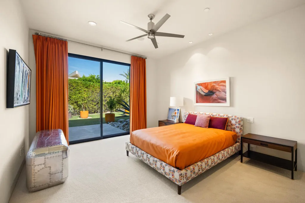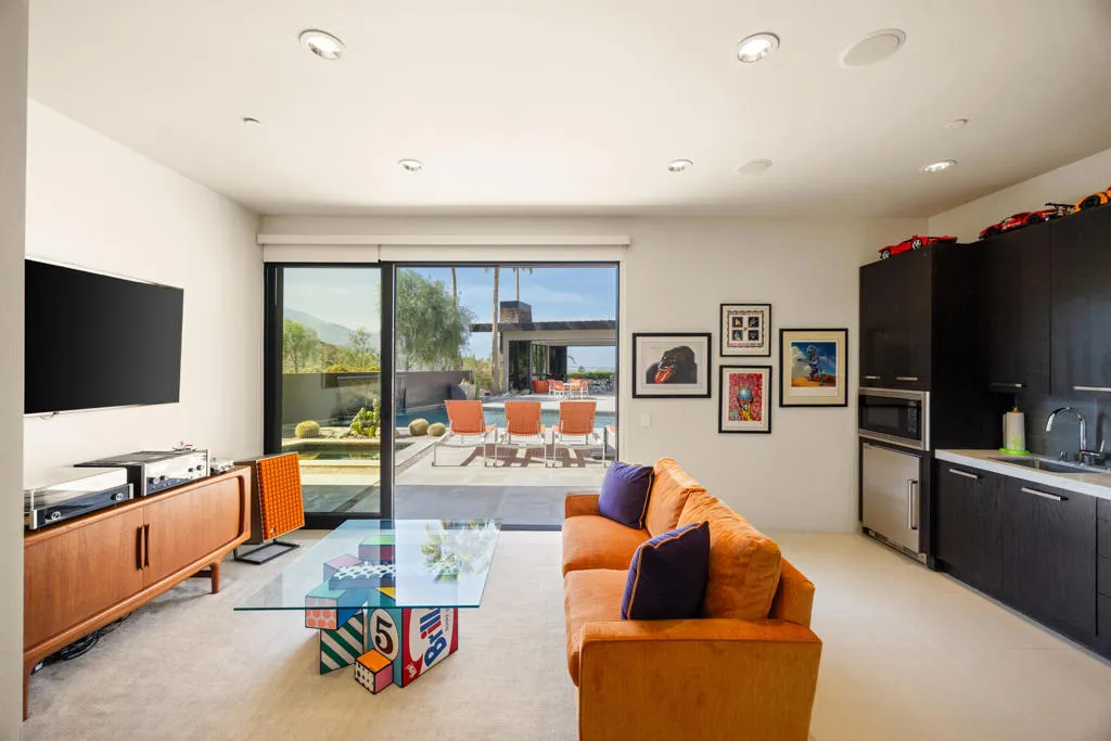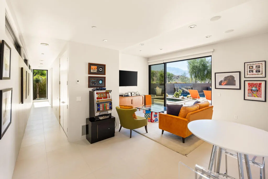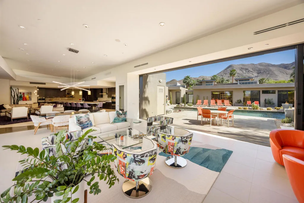 Perched on a prime corner lot within the prestigious Mirada Estates, this exceptional residence captures sweeping, unobstructed views that truly elevate desert living. Expansive walls of glass invite the outdoors in, framing breathtaking panoramas of the surrounding mountains and valley. As evening falls, the shimmering city lights of Palm Springs create a magical backdrop you'll never tire of.Spanning 5,677 square feet, this thoughtfully designed home offers five spacious bedrooms and four and a half baths, including a private, detached two-bedroom guest house--perfect for hosting guests in comfort and style. Every detail has been meticulously curated, showcasing hand-selected custom finishes such as elegant Walker Zanger stone slabs, sleek Dornbracht fixtures in the kitchen and primary bath, Toto toilets, and a spa-inspired primary suite complete with a steam shower. A striking backlit onyx sink highlights the powder room, while custom fire features and premium appliances and lighting add warmth and sophistication throughout.Designed for effortless indoor-outdoor living, the backyard is an entertainer's dream. Enjoy a resort-style experience with a sparkling pool, tanning shelf, two relaxing spas, and a one-of-a-kind swim-up grotto bar--perfect for cooling off with a drink without ever leaving the water. As a resident of Mirada Estates, you'll also enjoy exclusive privileges at the five-star Ritz-Carlton, including fine dining, preferred room rates, and access to world-class spa and fitness amenities--bringing a true luxury resort lifestyle right to your doorstep.