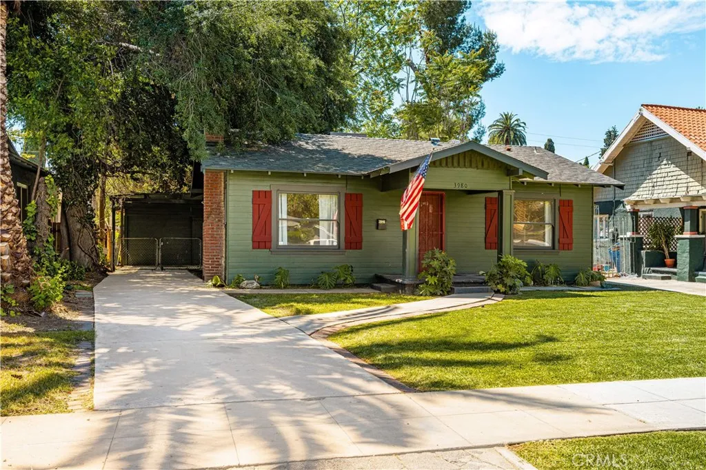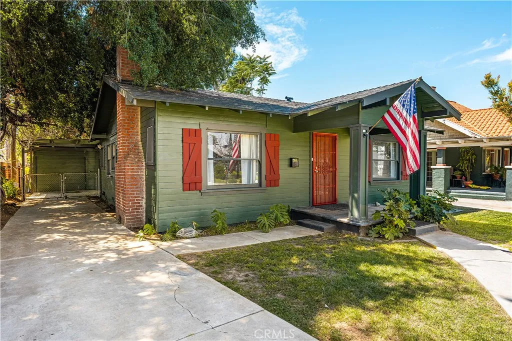 Nestled in the prestigious Wood Streets neighborhood of Riverside, this charming 1921 Craftsman home sits on a beautiful tree-lined street just moments from Downtown Riverside, the historic Mission Inn & Spa, and UC Riverside. Blending timeless character with thoughtful updates, this home offers both charm and convenience in one of the city’s most desirable areas. Inside, you’ll find fresh interior paint, new flooring, and abundant natural light throughout. The formal living room features a classic fireplace flanked by built-in bookcases, creating a warm and inviting space, while the separate formal dining room showcases a large window that enhances the home’s bright and airy feel. The kitchen retains its original charm with retro tile counters, complemented by a cozy eat-in or desk space. Both bedrooms are generously sized and feature their own en-suite bathrooms, offering flexibility and privacy. The oversized primary bedroom is especially impressive, with three windows for natural light and three closets providing ample storage. Situated on a large lot of over 8,200 square feet, the property offers incredible potential, including space for a possible ADU. The backyard provides a serene setting with a relaxing atmosphere and a striking palm tree, perfect for enjoying Southern California living. Additional highlights include an indoor laundry room and a layout that blends functionality with classic design. A rare opportunity to own a character-rich home in a prime location—offering exceptional value for its condition, charm, and neighborhood.